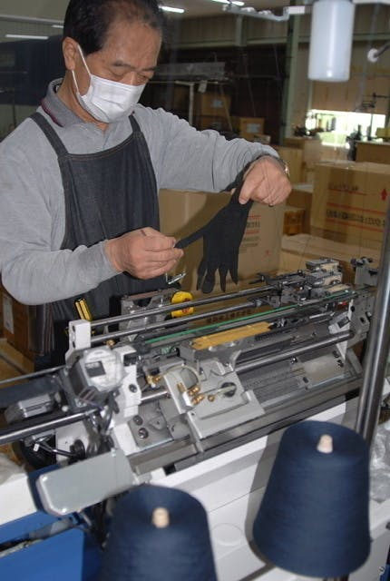 実は全自動シームレス手袋編み機も(株)島精機製作所が作っております。そういう意味では編み機までも和歌山発になります。
