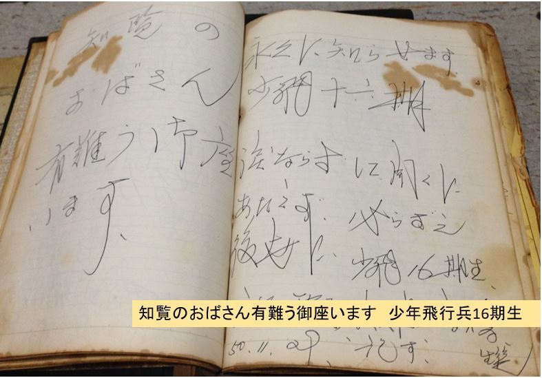 そのノートには旧軍時代の所属や階級、名前、連絡先、イラスト、祖国日本への想い、鳥濱トメや礼子への感謝の言葉、そして戦友への想いなどが書かれ、後日、それを読んだ別の方がまた新たに連絡先を書く。このノートを通じて互いに生存していることを知り「薩摩おごじょ」で再会を果たすという、ドラマも数多くあったようです。