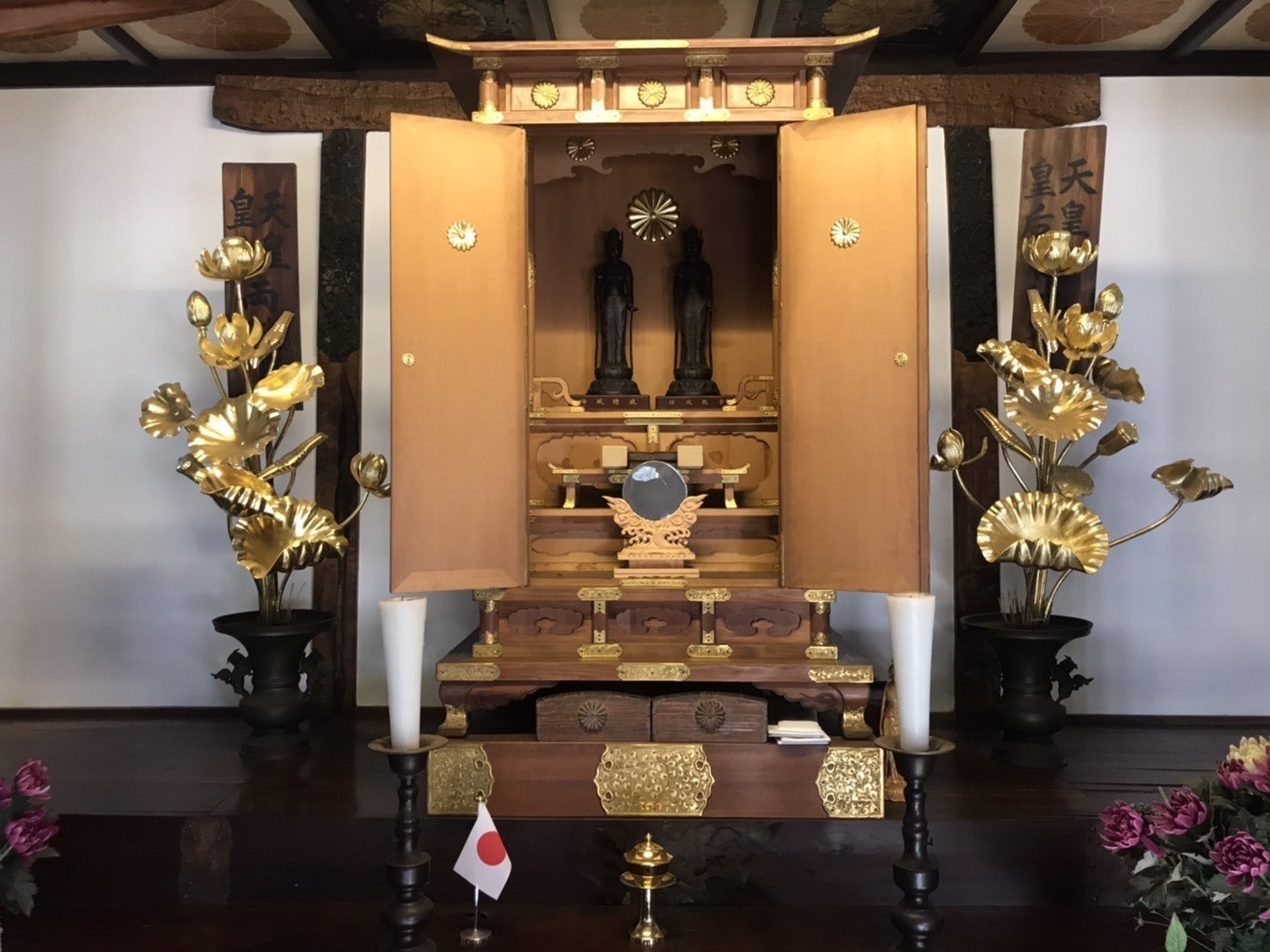 特攻観音堂の中に祀られた「特攻平和観音」様 陸海軍の2尊