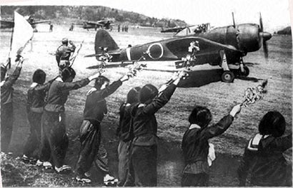 知覧から出撃する穴澤少尉を見送る”なでしこ隊”