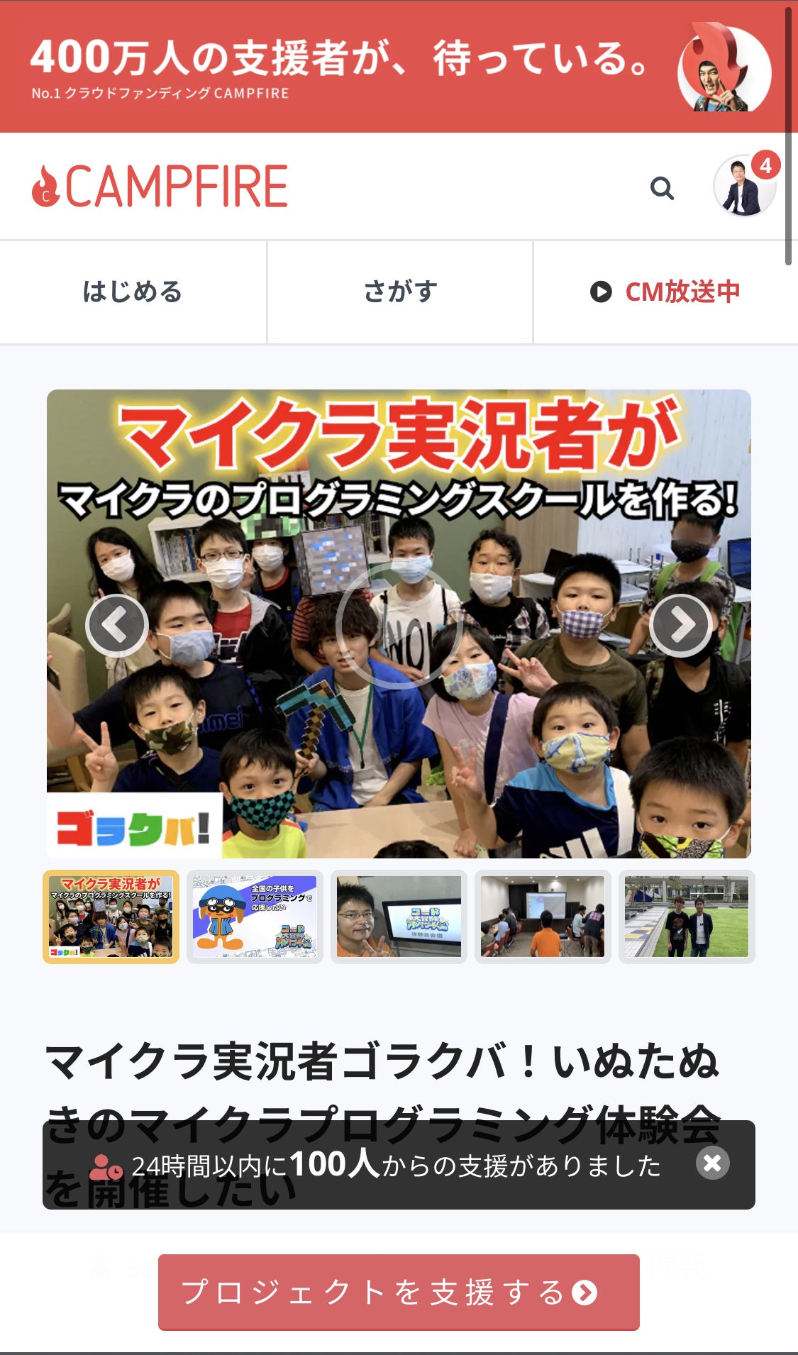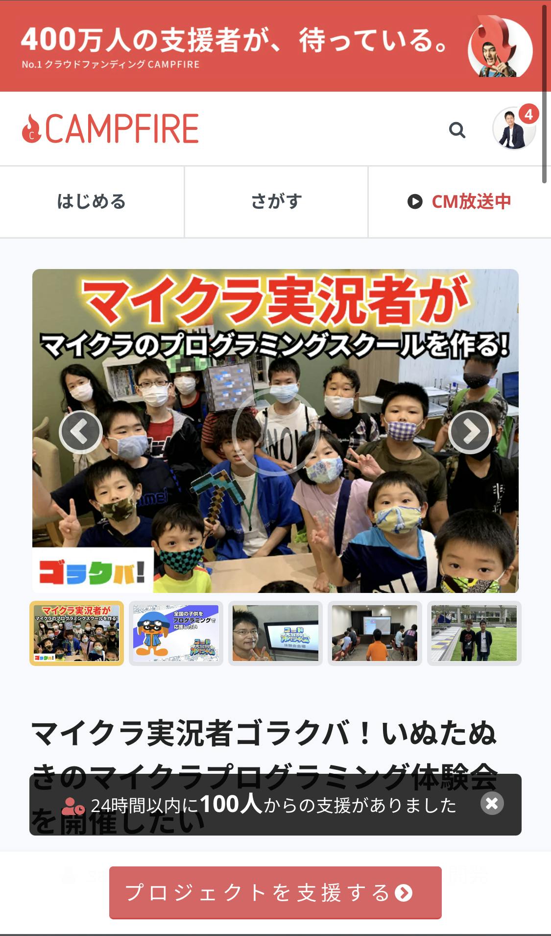 我々のプロジェクトのご支援いただいた人数が100名を突破しました!