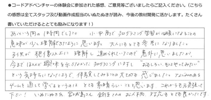 体験会に参加された方で「スキャンしての公開を可」としていただいた方のものの一部を公開させていただきます!とても満足頂いたようで、本当にうれしいです!これからも頑張ります!