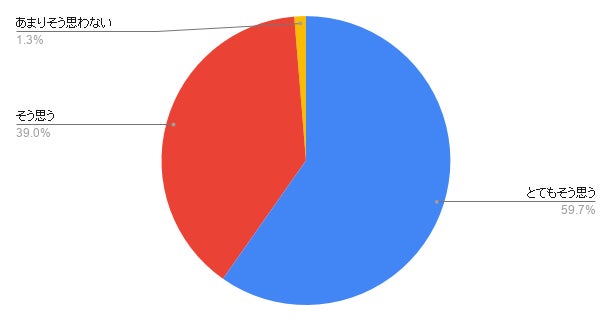 これも9割以上の方が「とてもそう思う」「そう思う」と回答していただき、コードアドベンチャーのプログラミング普及事業に対してとても応援をしていただいている、という実感を得ることができました!