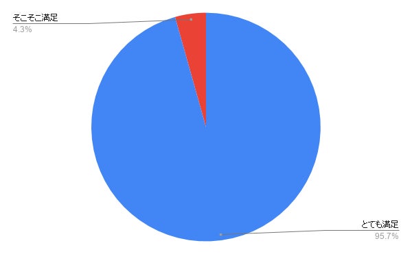 体験会にご参加いただいたご家庭の95%が「とても満足」そのほかの方も「そこそこ満足」とお答えいただき、満足度100%を達成することができました!やった!