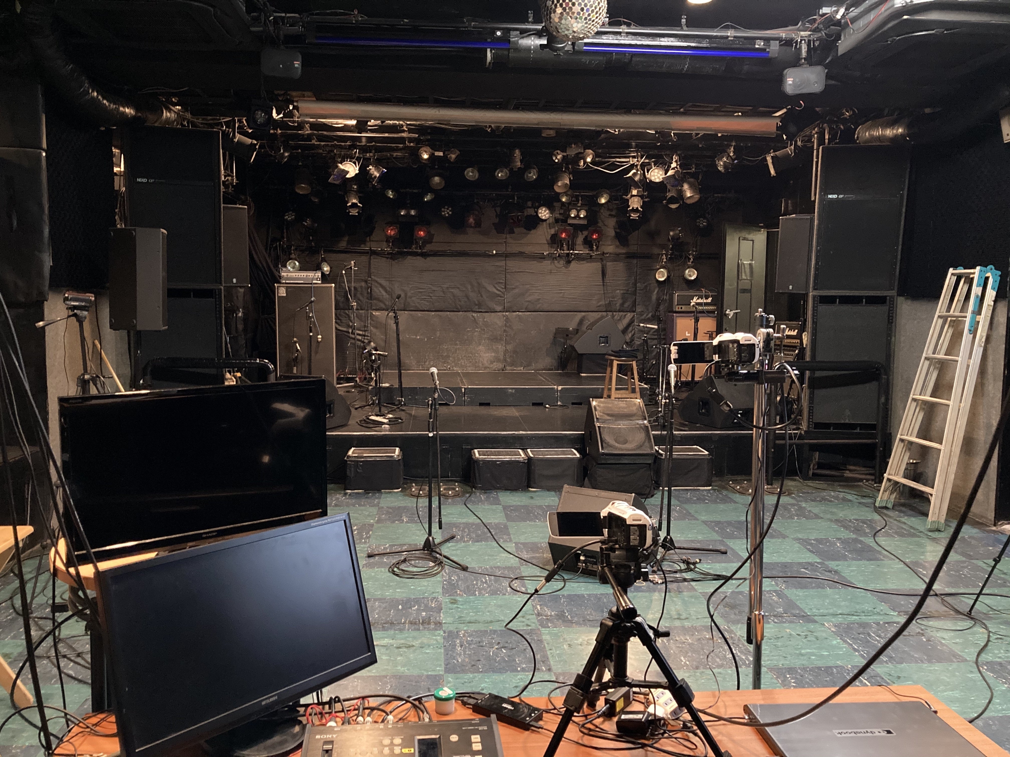 ライブ中をパシャり。ソーシャルなディスタンスを図りつつ、face to aceのお二人はフロアで演奏。そしてドラム台も出してますので、3段積みのステージです。