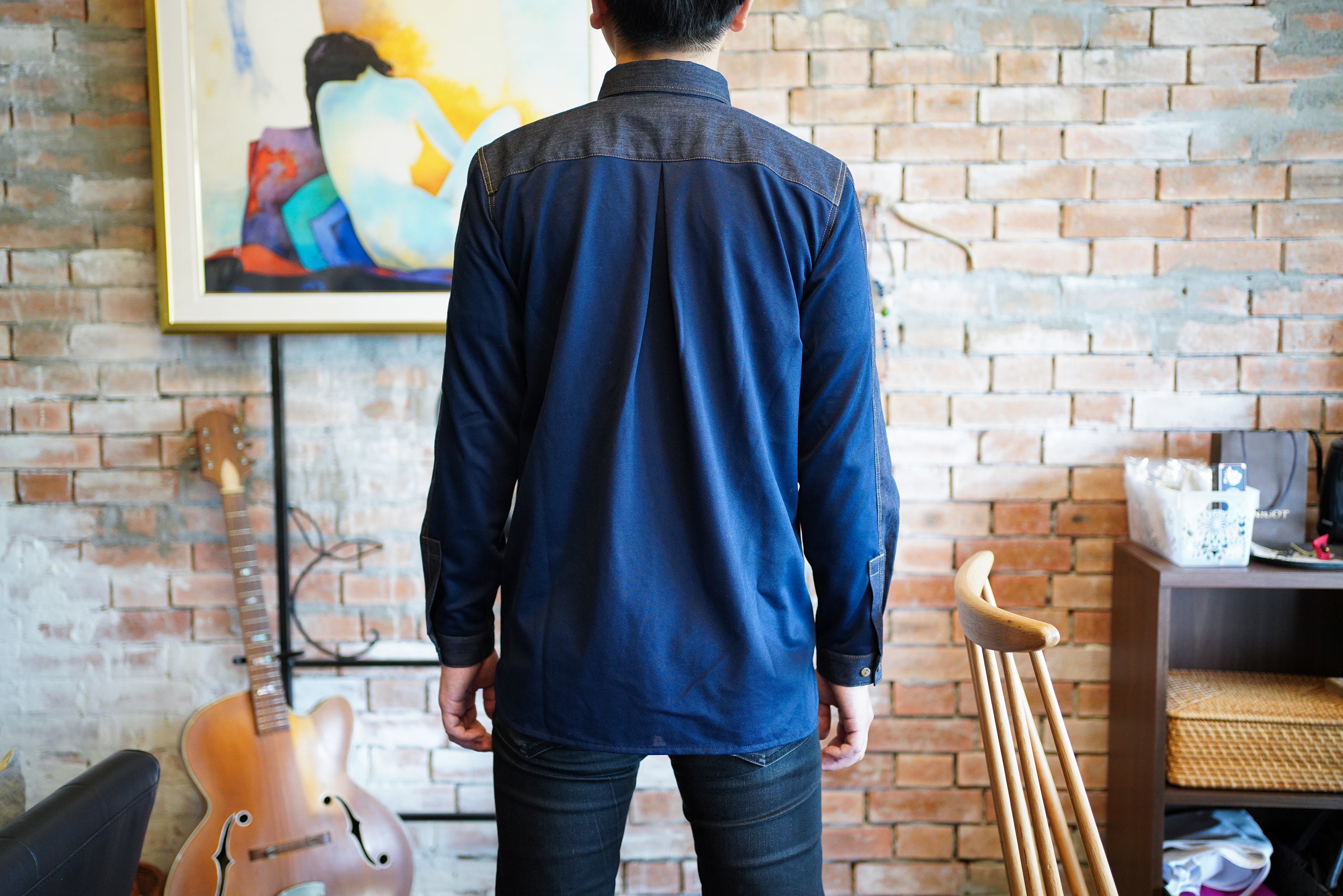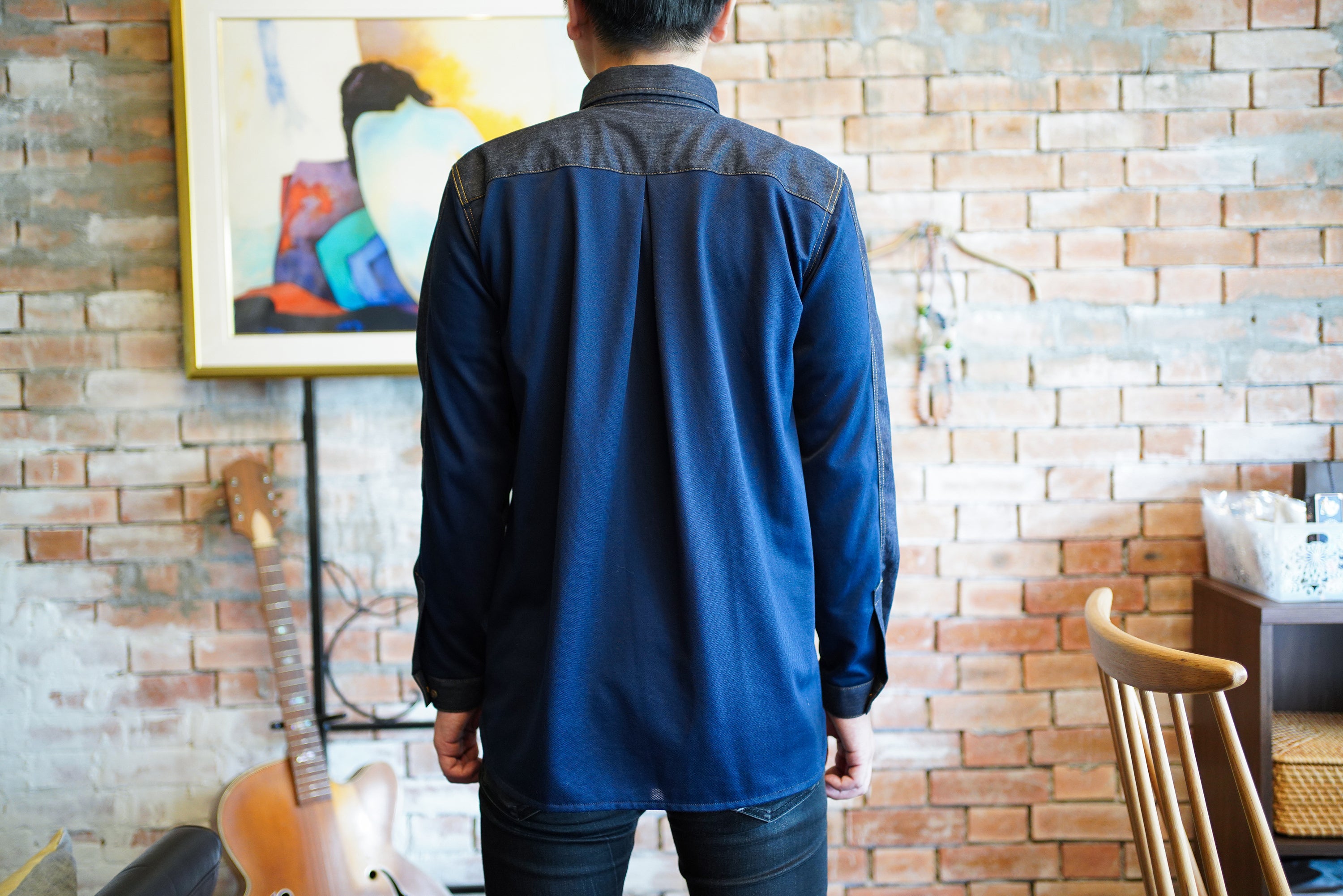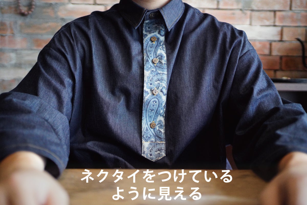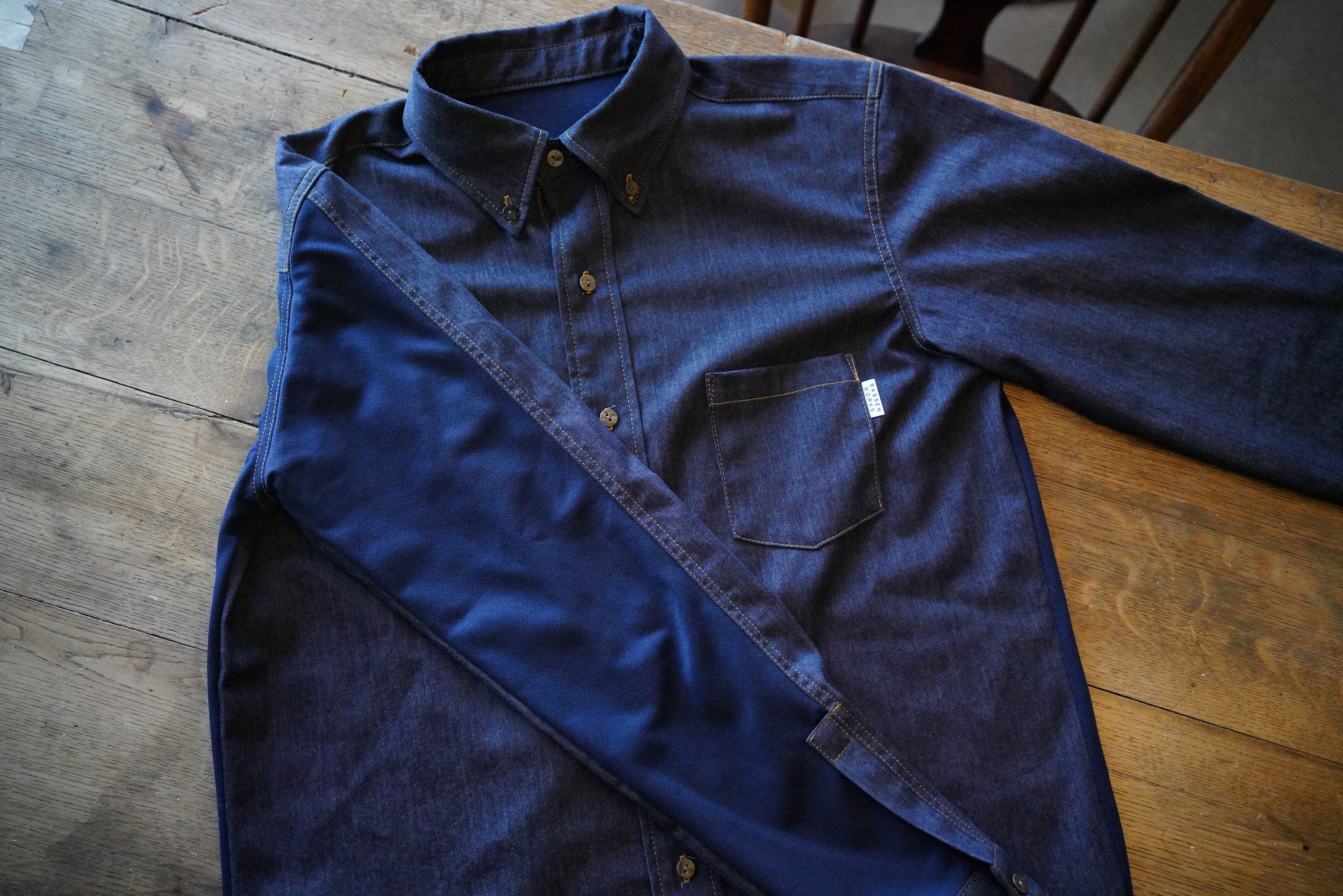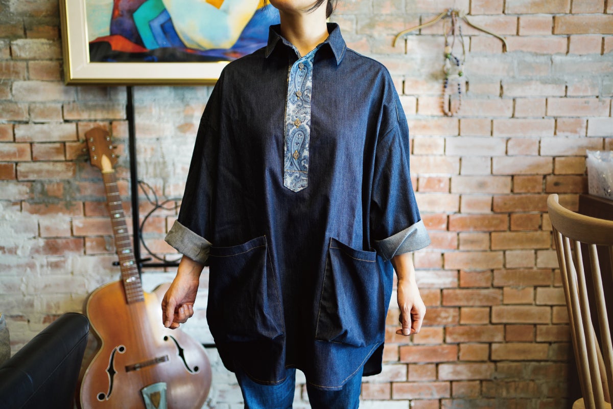 今回のシャツには、デニムの街「福山市」で作られる高品質なデニムを使用しています。