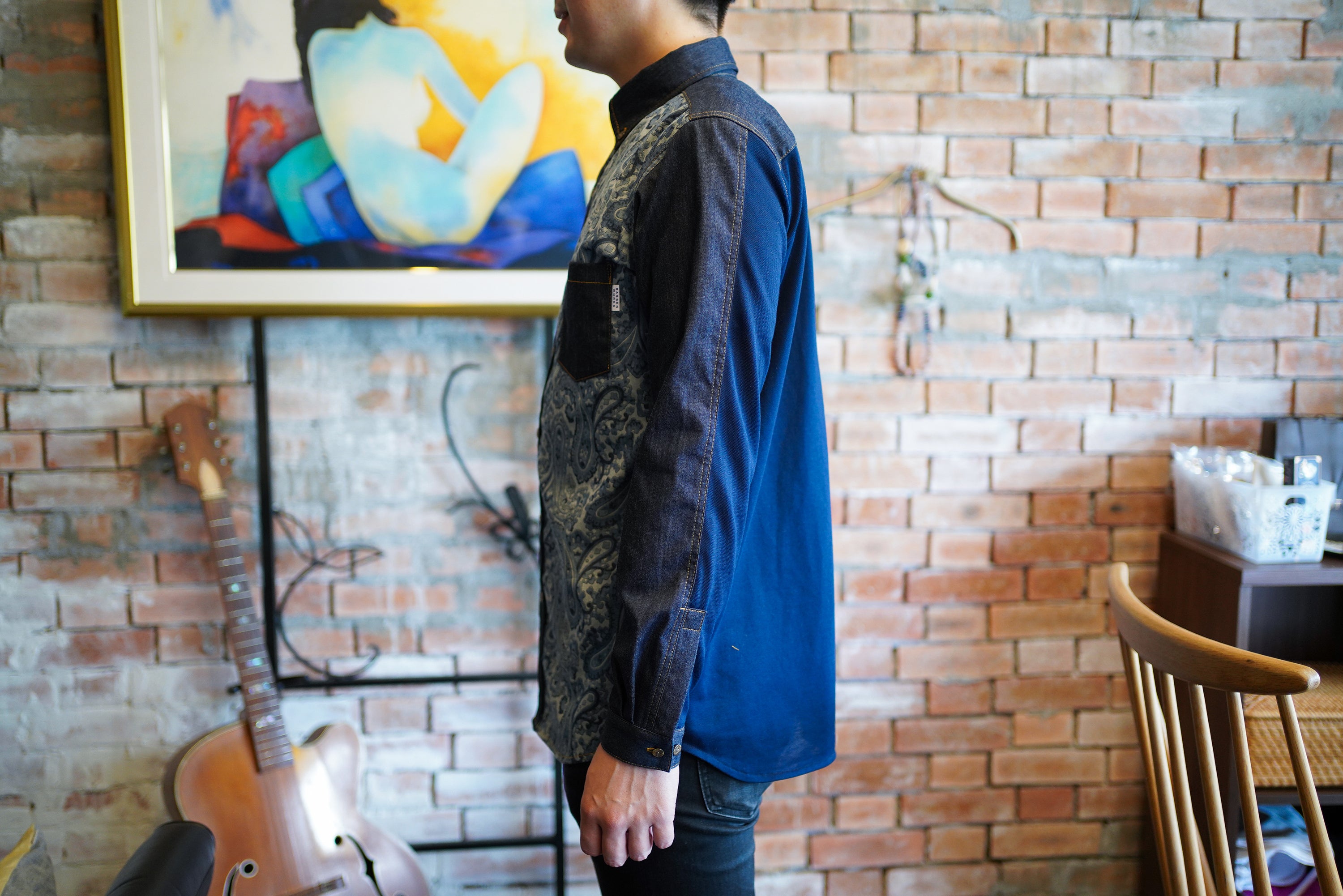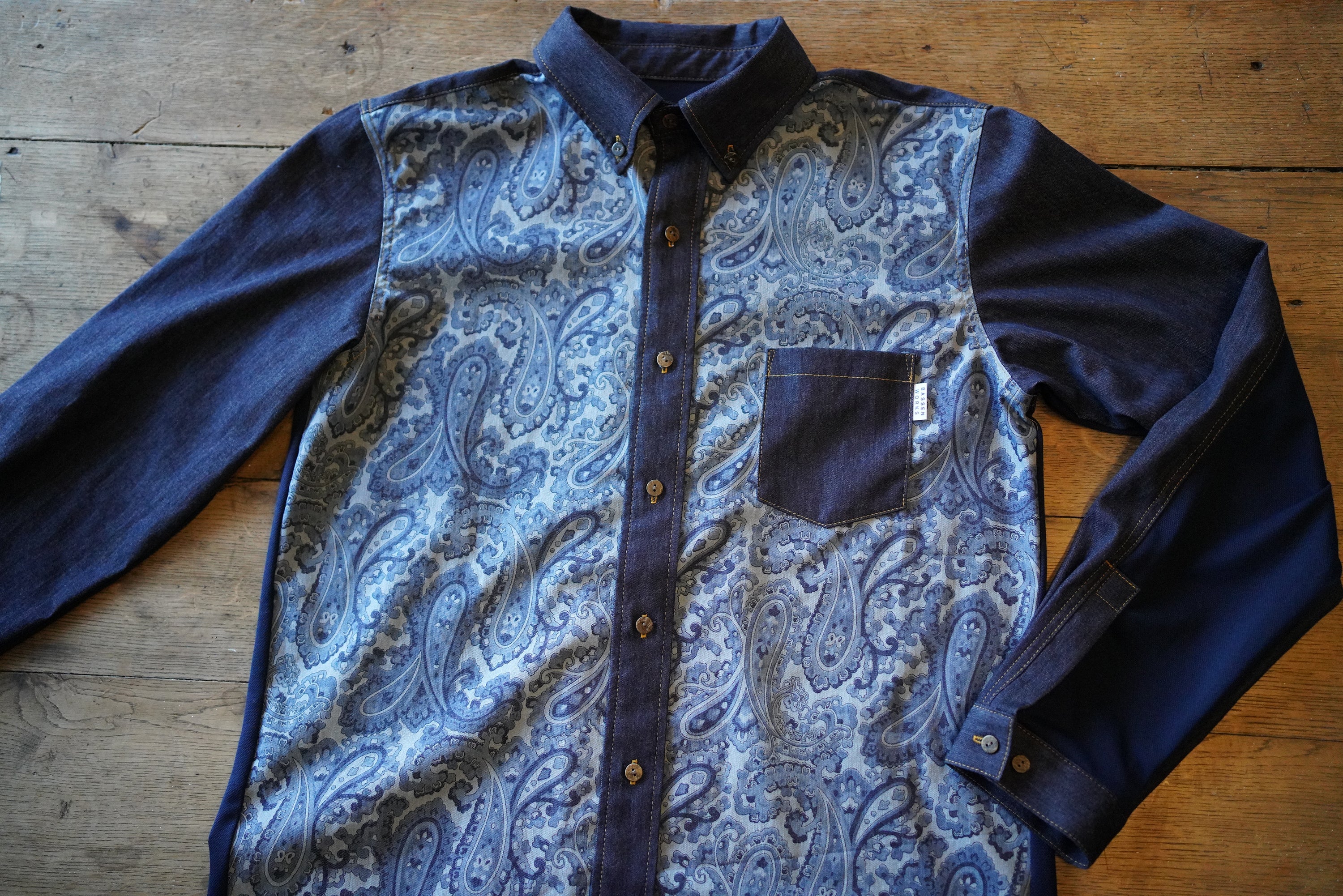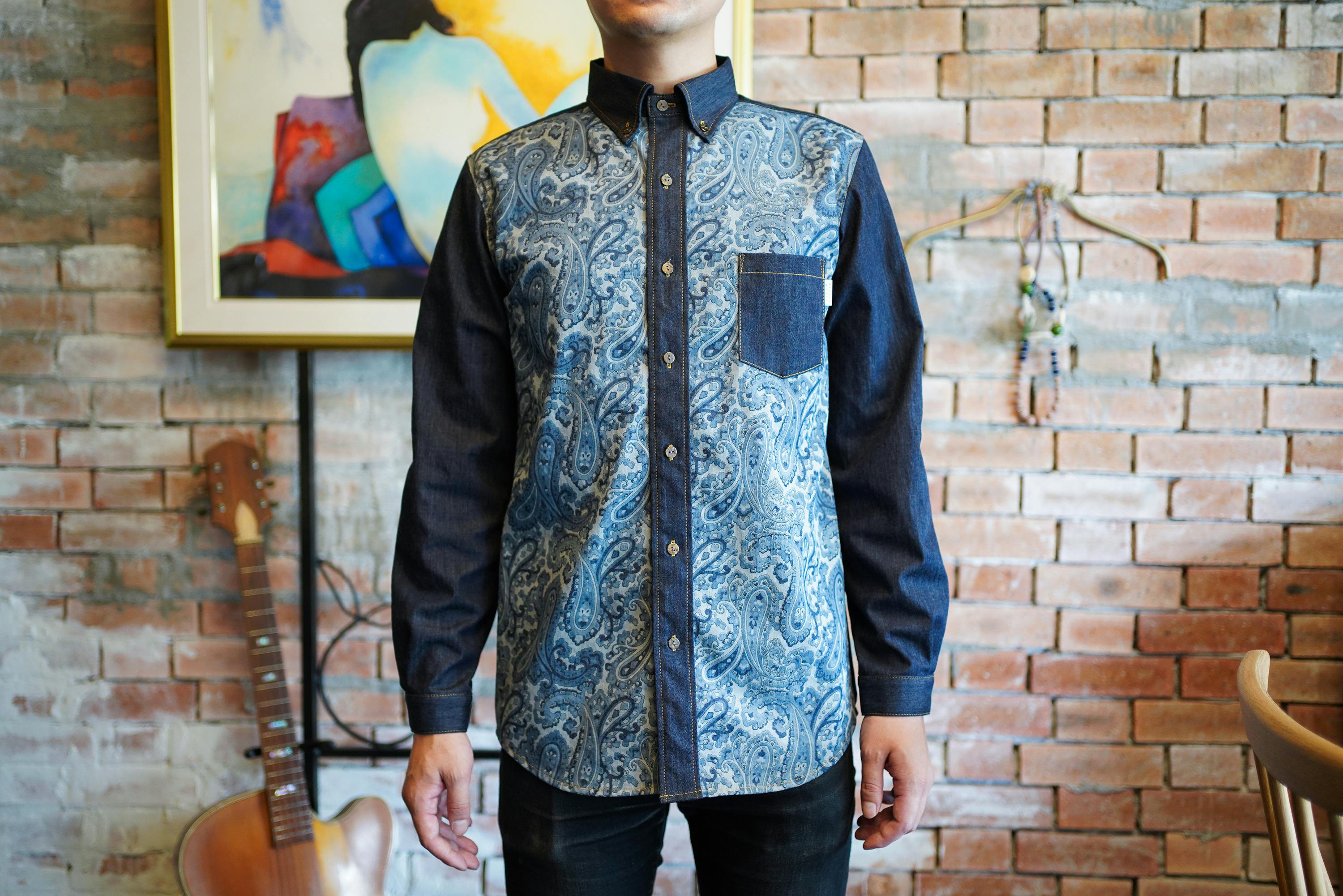 ・デニムシャツ ペイズリー柄