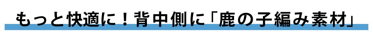 袖裏から背中側にかけては、ポロシャツやスポーツウェアにも使われている、通気性の良い鹿の子編み素材への切り替えを採用。