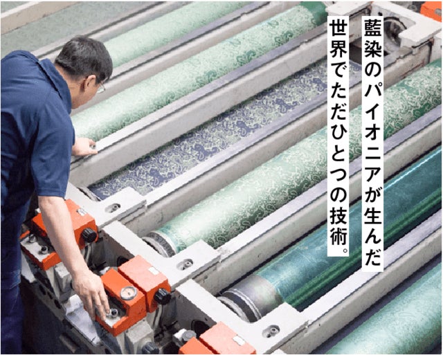 さらに、染色では柄を付けることができないと思われていた大正時代、白を抜き出すことで柄を生みだす「抜染(ばっせん)」という技術の機械生産も日本ではじめて確立させるに至りました。