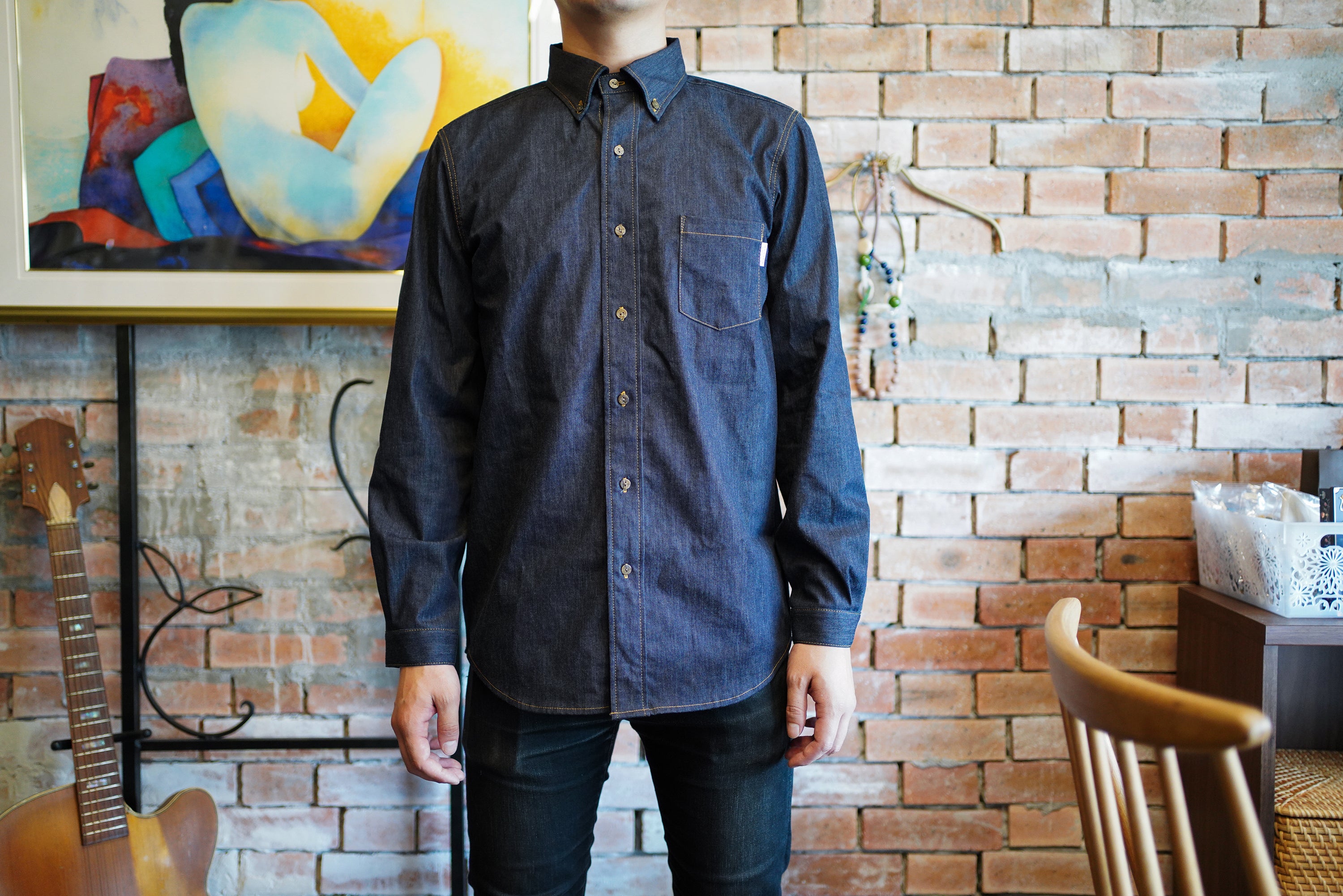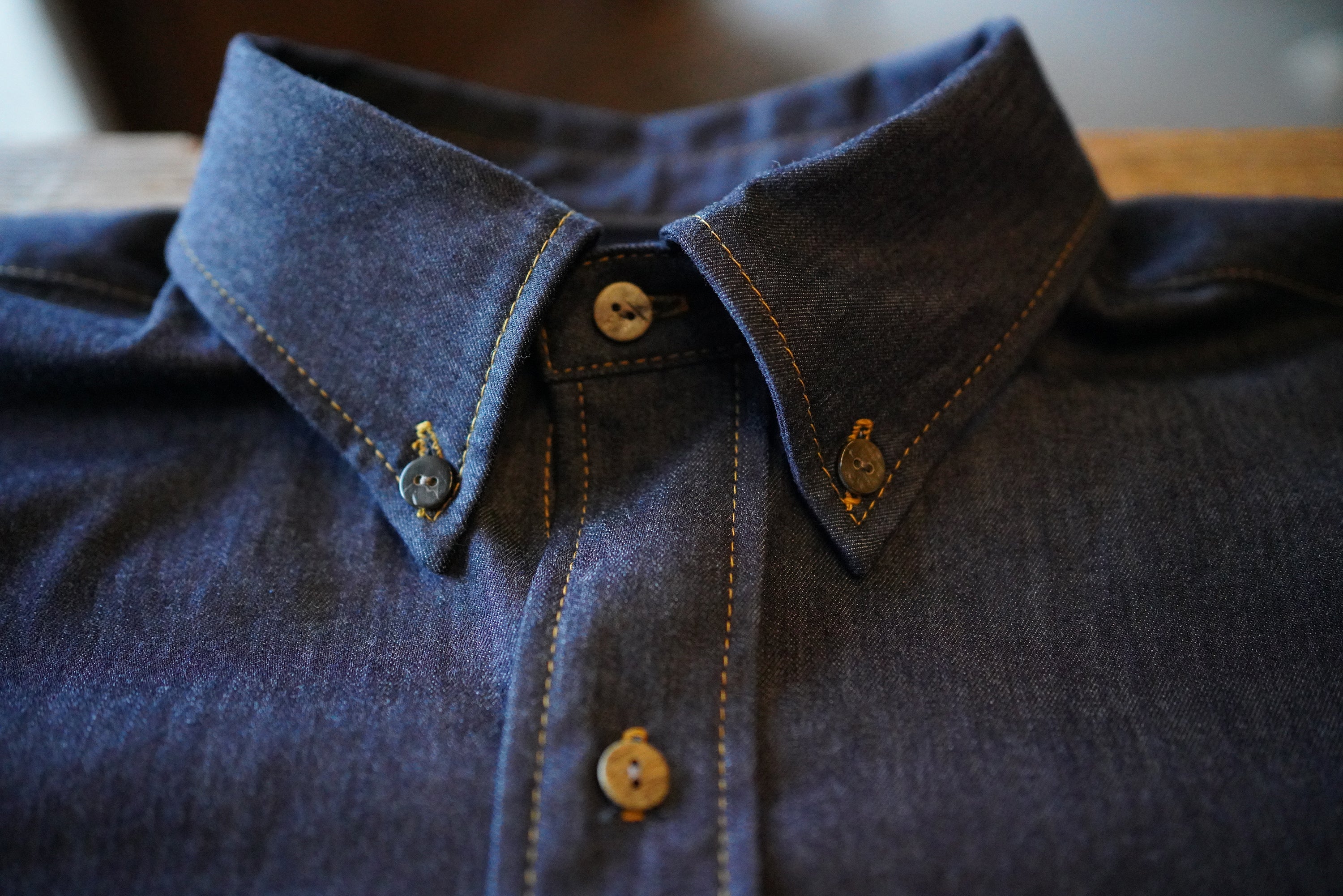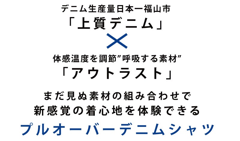 今回のシャツには、デニムの街「福山市」で作られる高品質なデニムを使用しています。
