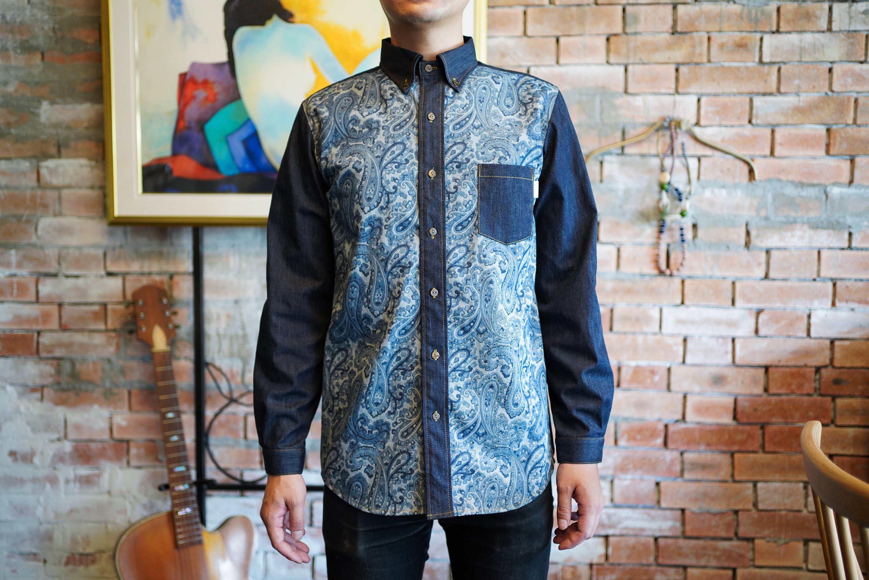 ・デニムシャツ ペイズリー柄
