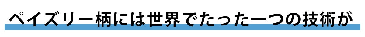 独特な存在感を放つペイズリー柄は、プリントではなく、世界でたった一つのものすごい技術「段落ち抜染」 という独自技術が使われています。
