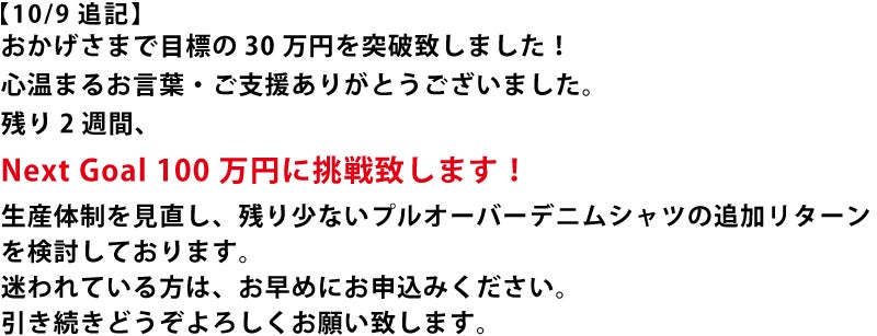 2020/10/26 10:00おかげ様でプロジェクト募集期間が終了し、達成率が300%越えとなりました!!たくさんの方からの応援をいただきました。本当にありがとうございます!現在生産を急いでおりますが、想定以上のペースでお申し込みをいただいたためスケジュールが若干遅れ気味となっております。できる限り早くお届けできるようスタッフ一同頑張ります!今後ともBASSEN WORKSを応援いただきますようよろしくお願いいたします。 もっと見る