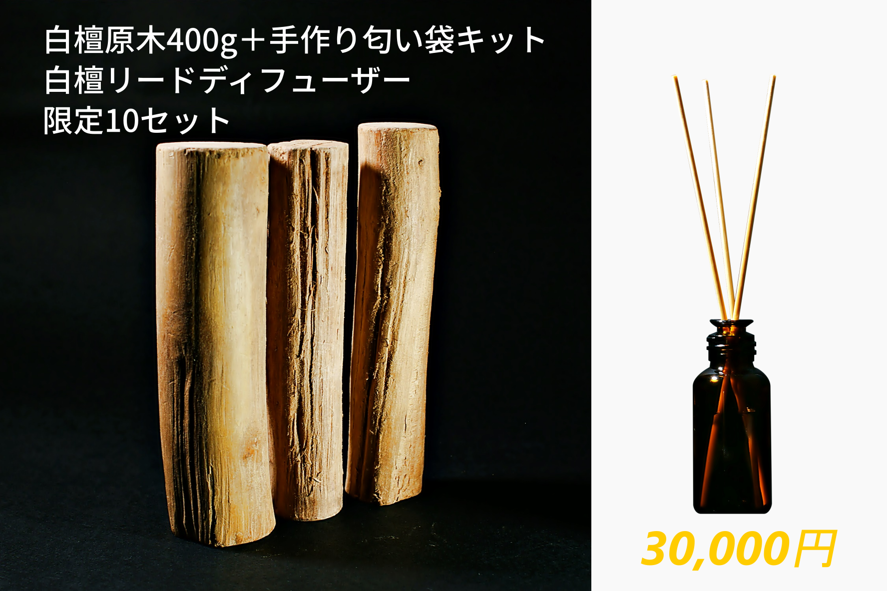 ⑦400g相当原木+手作り匂い袋キット & 白檀リードディフューザー 30,000円(限定10セット)