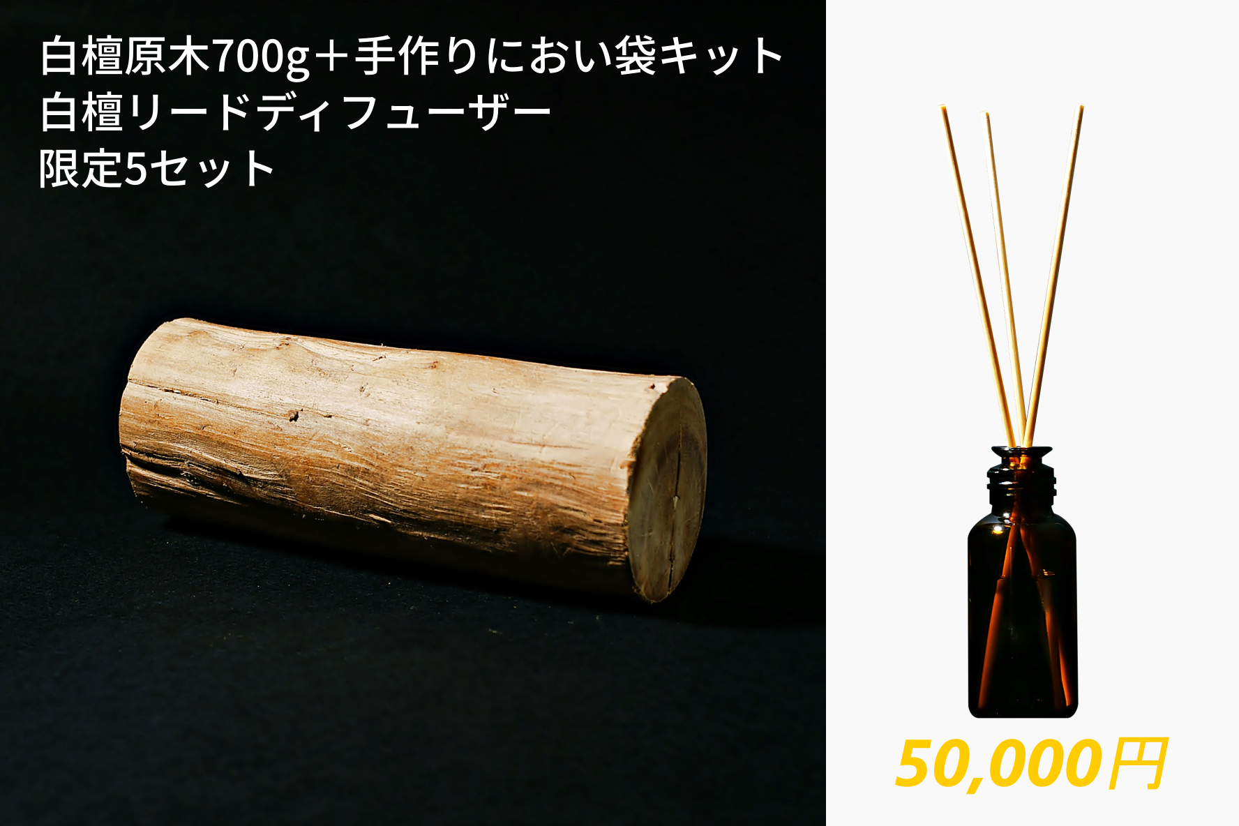 ⑧700g相当原木+手作り匂い袋キット & 白檀リードディフューザー 50,000円(限定5セット)