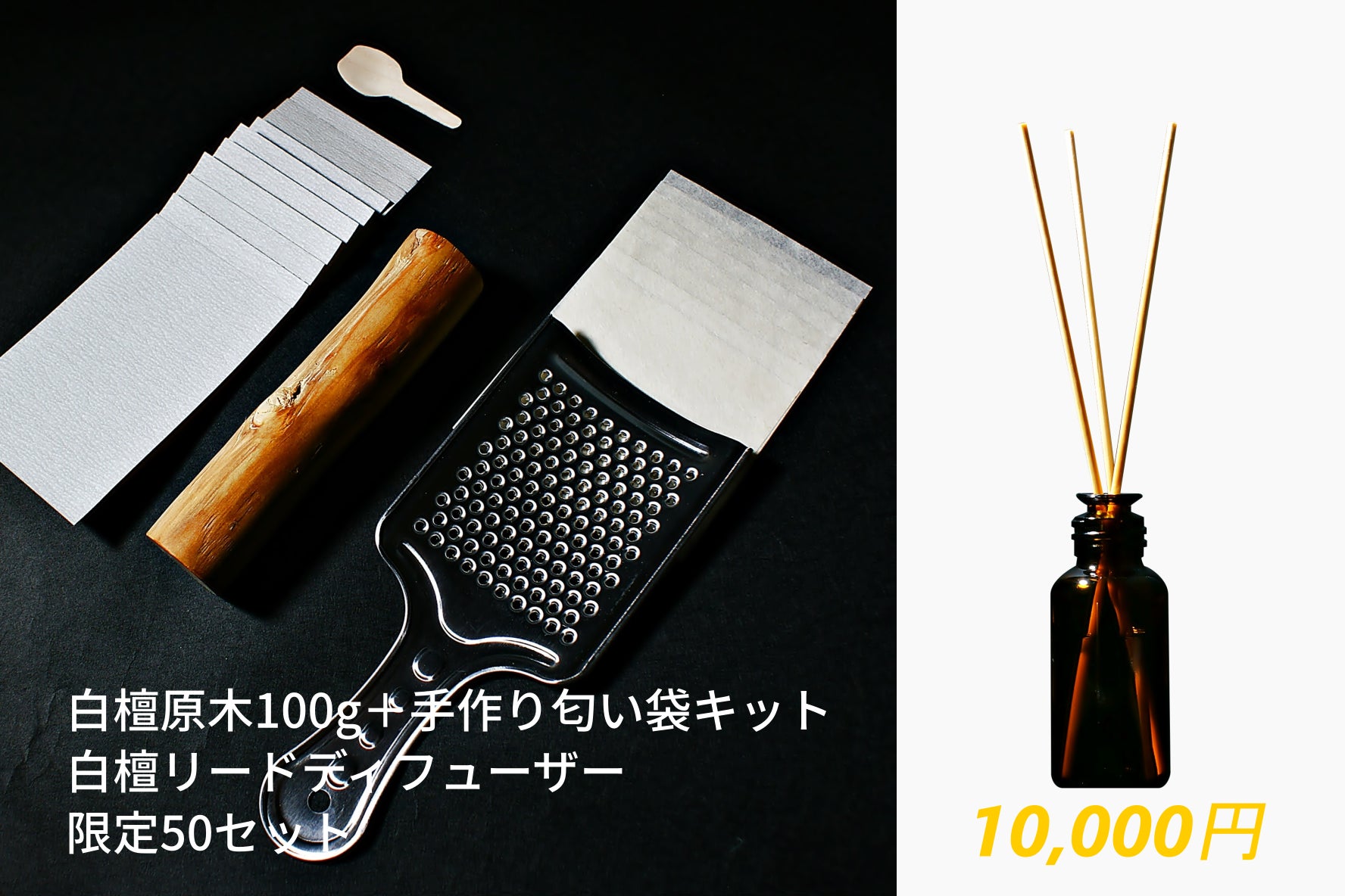 ⑤100g相当原木+手作り匂い袋キット & 白檀リードディフューザー 10,000円(限定50セット)
