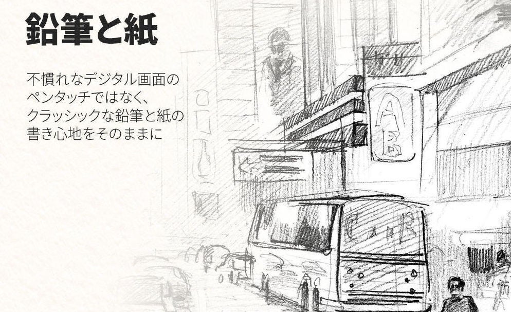 (紙に鉛筆で書く様子)