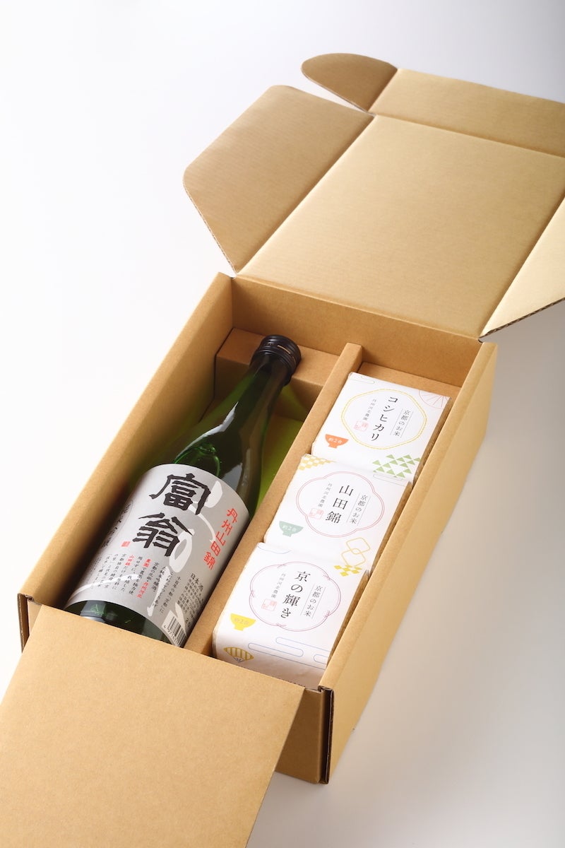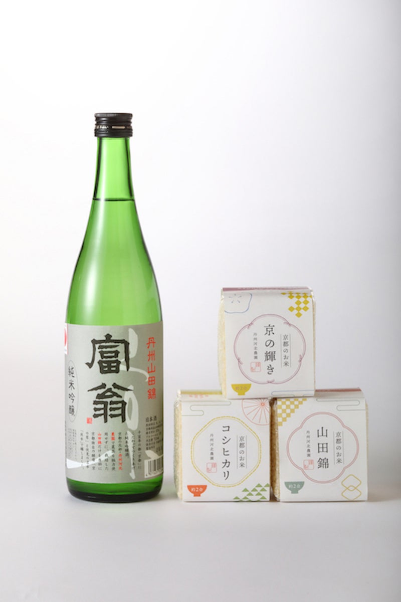 お酒は、河北農園の「山田錦」を全量使用した、「純米吟醸 丹州山田錦 720ml(限定流通商品)」です。