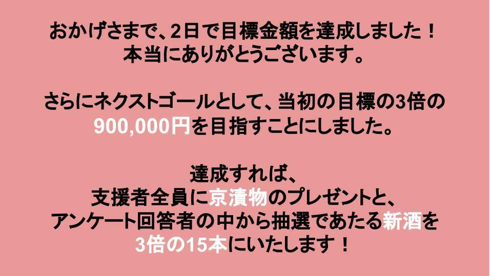 無事に目標金額達成に2日で届き、本当に嬉しく思っています。
