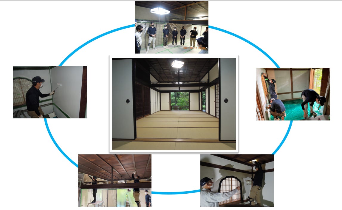 今回の活動は実際の現場の流れで工事を行いました。活動に参加してもらった若手職人が実際の現場のような朝礼から職長の指示通りに作業を実施するまで体験できたと思います。