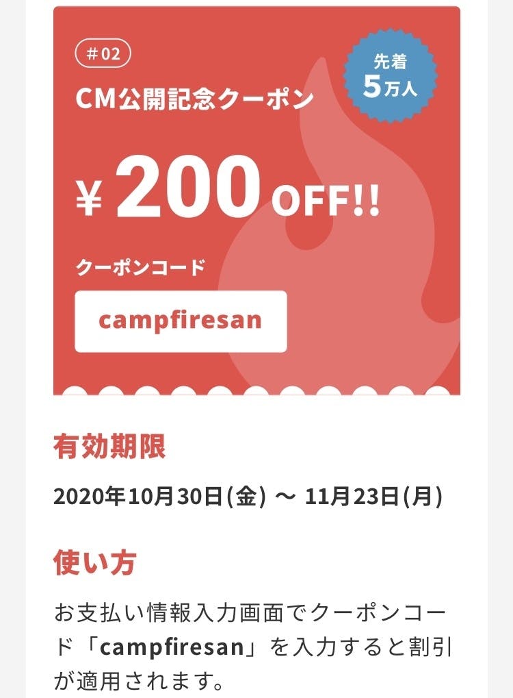 クーポンコード:campfiresan