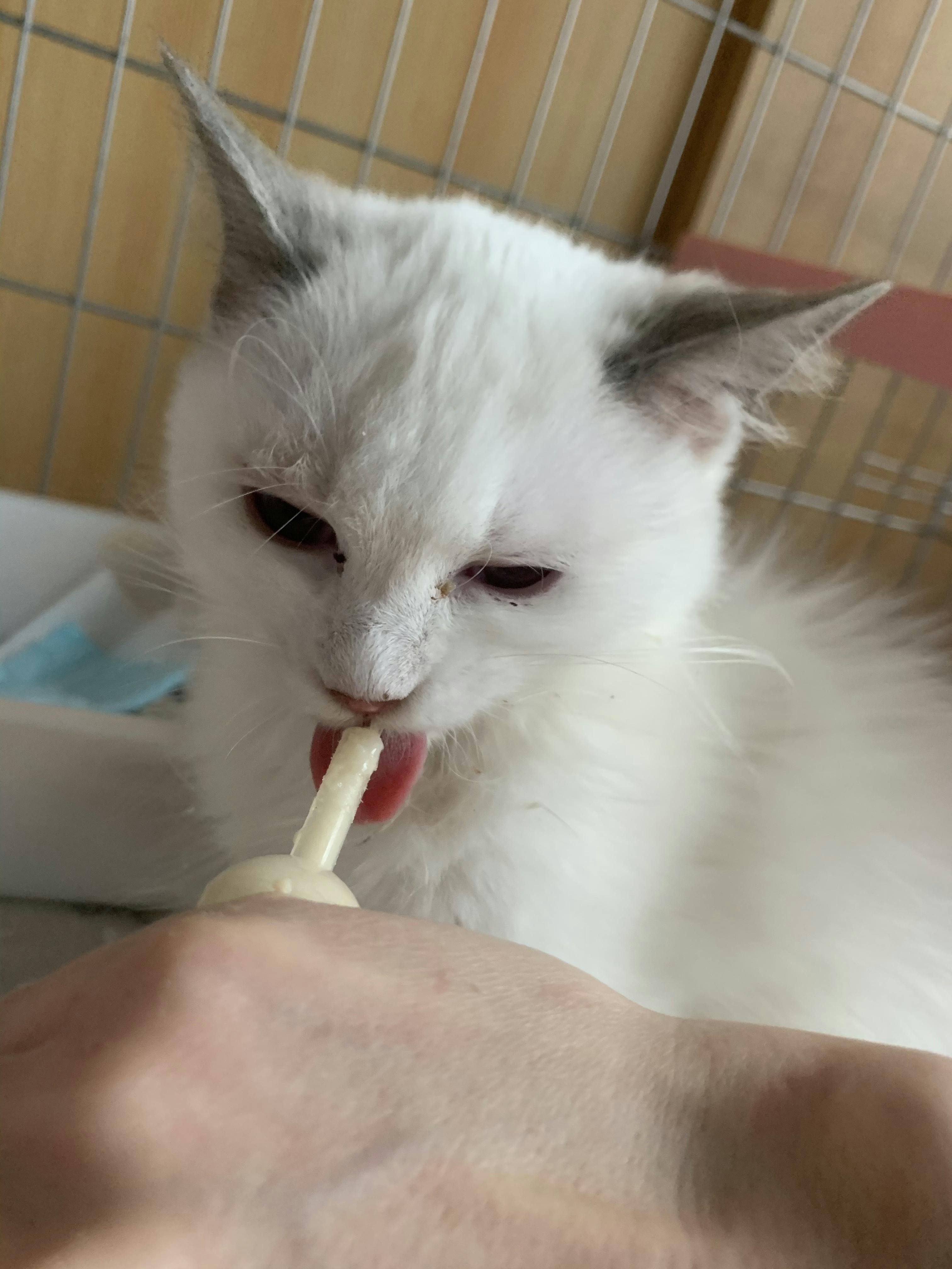 モフモフちゃんは自分で食べることができなくなってからは、注入器で入れ込んでいました。