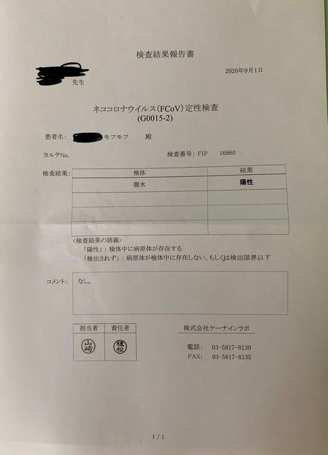 FIP抗体検査 5000円×2=10000円