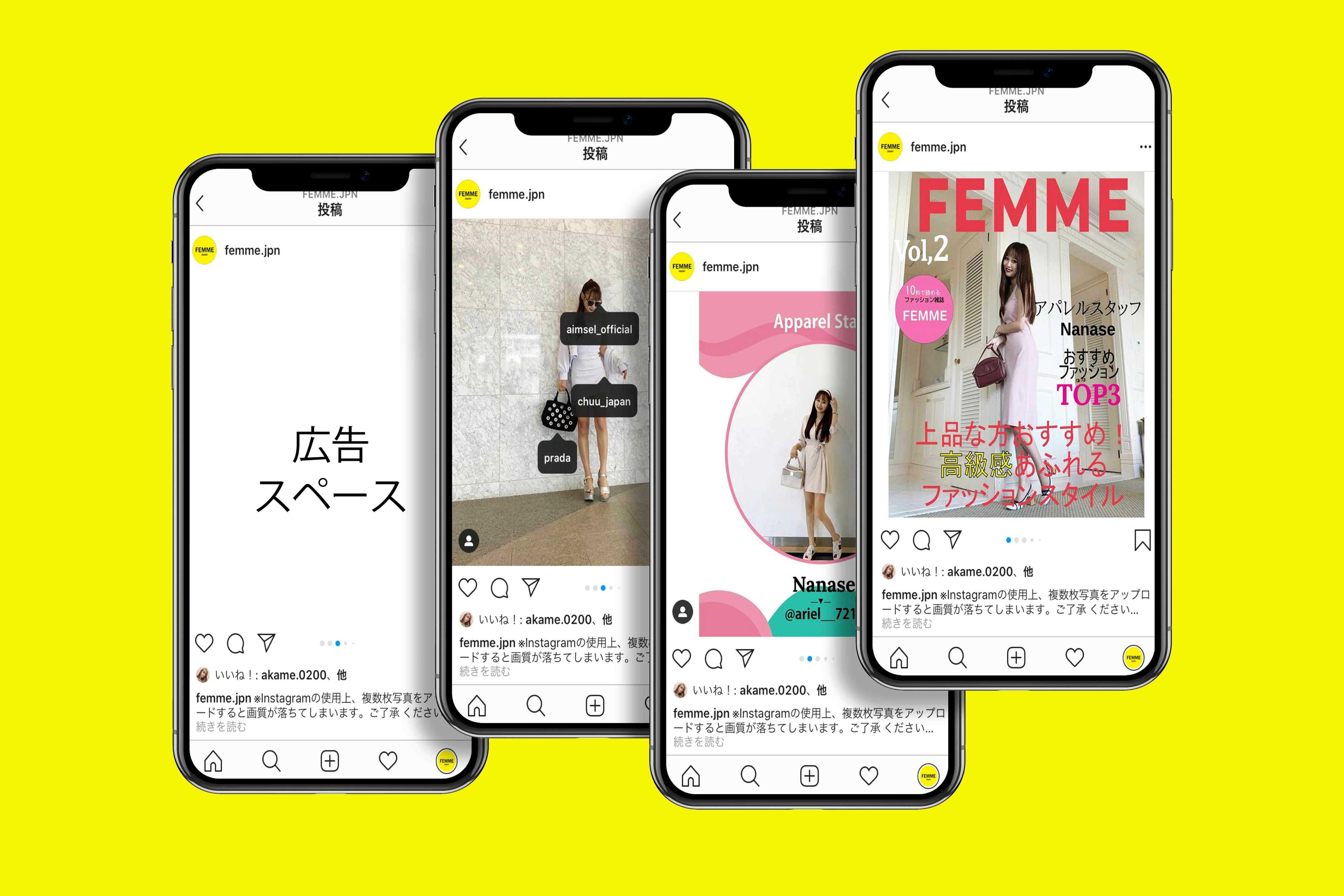 3、1万人以上フォロワーがいるインフルエンサー様のFEMMEコンテンツの中にあなたの広告を1ページ入れます。