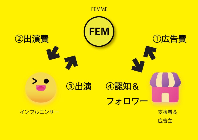 毎投稿フォロワー1万人いるインフルエンサー様とコラボしていただきます。そして毎投出演していただいたインフルエンサー様に、「FEMME」に出演した旨を告知していただきます。