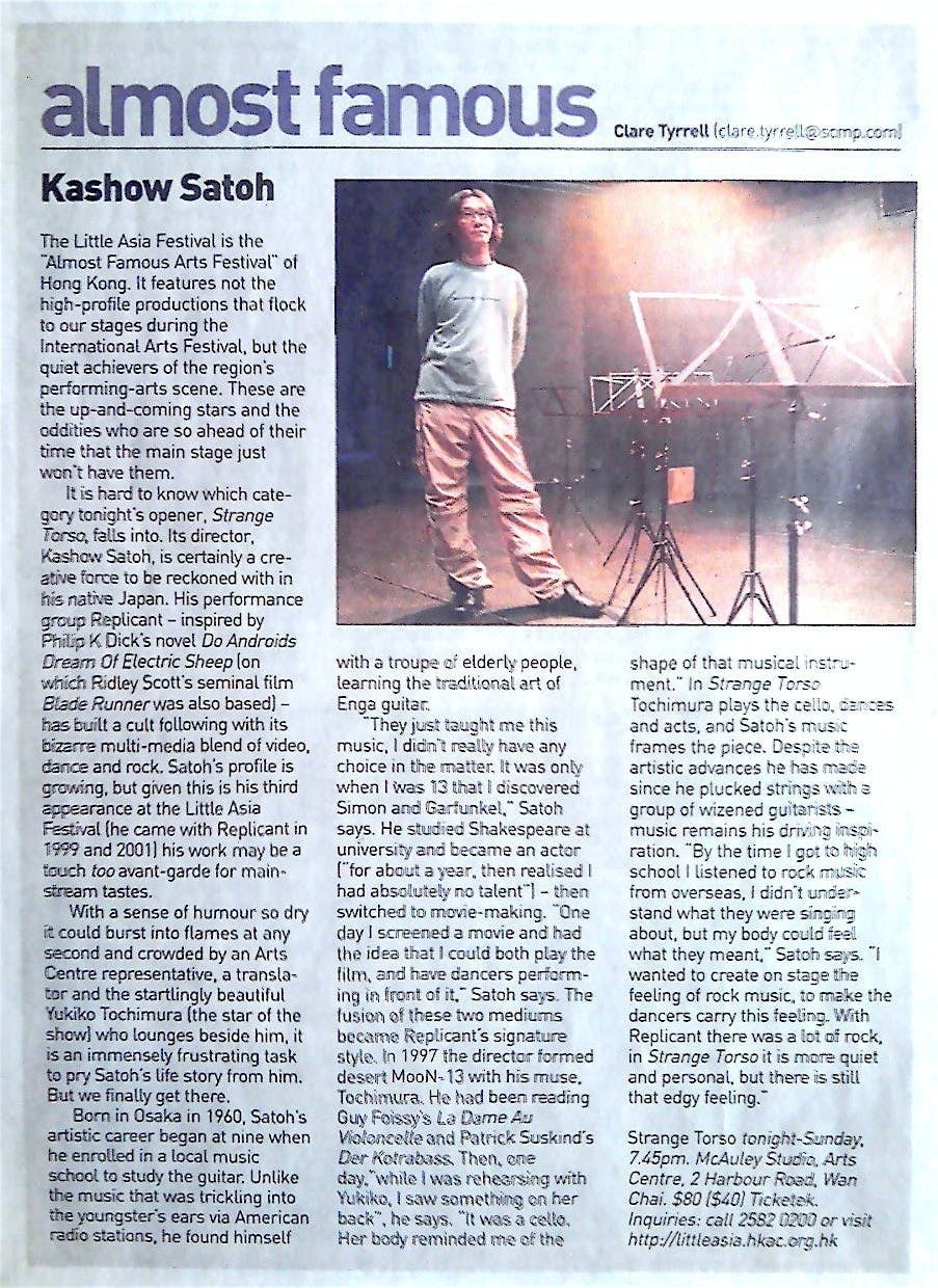 佐藤香聲氏へのインタビュー記事 South Chine Morning Post(香港・2001年)