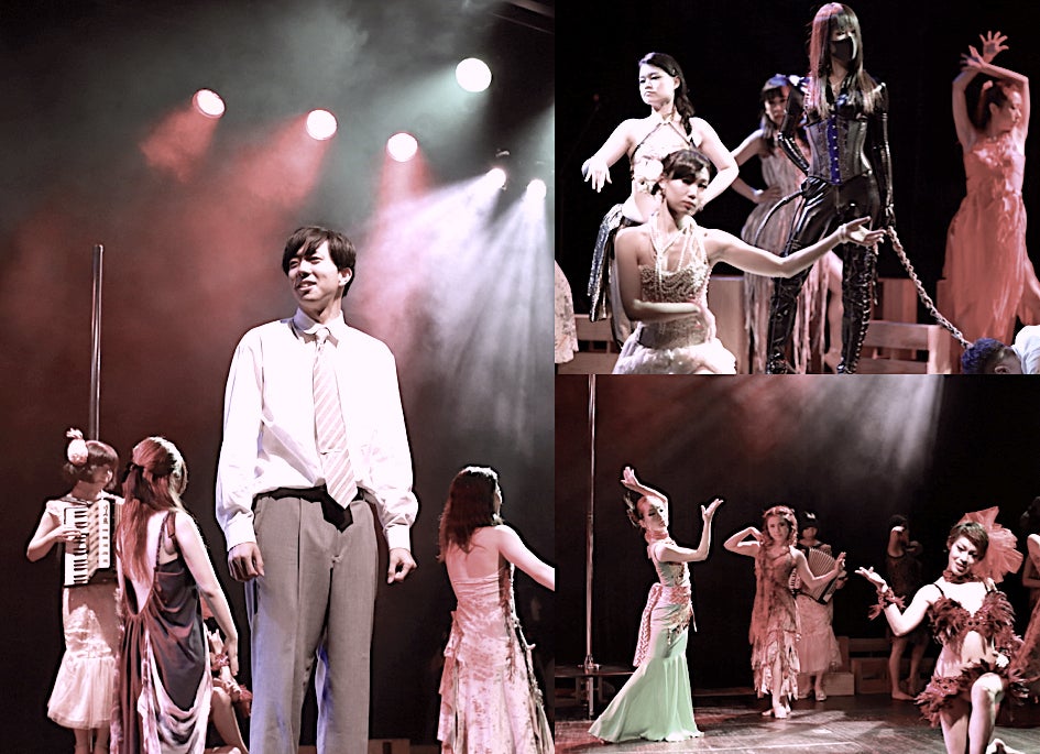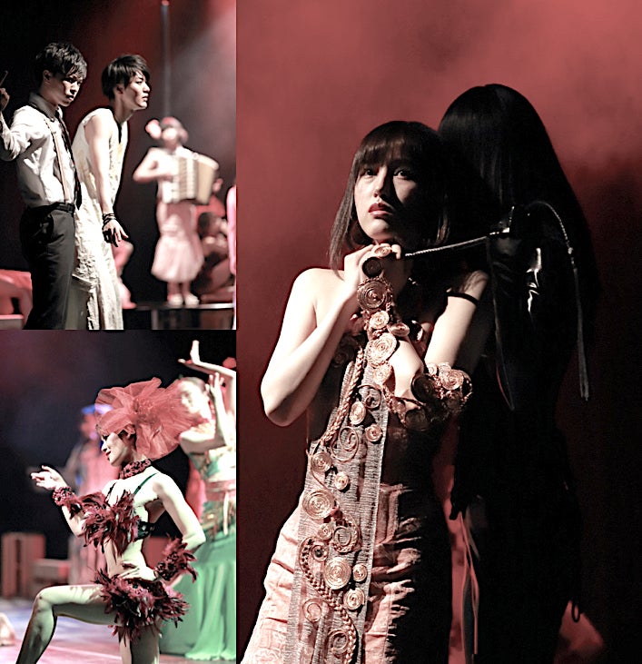 「SMオペラ」は2013年のワーク・イン・プログレス(試演)を経て、2014年、アトリエ劇場「藝術工場◉カナリヤ条約」(大阪)で、「SMオペラ〜上海編」として初演しました。仏・エロティック文学の最高峰「O嬢の物語」をベースにした作品で、寺山修司の映画「上海異人娼館」へのオマージュでもあり、演劇にバレエやコンテンポラリーダンスを融合させるのはもちろん、さらには伝説のストリッパー・飯干未奈の舞踊や、遠藤智子による日本随一のダイ族舞踊、そしてSMフェティッシュショーまでもをコラボした舞台でした。