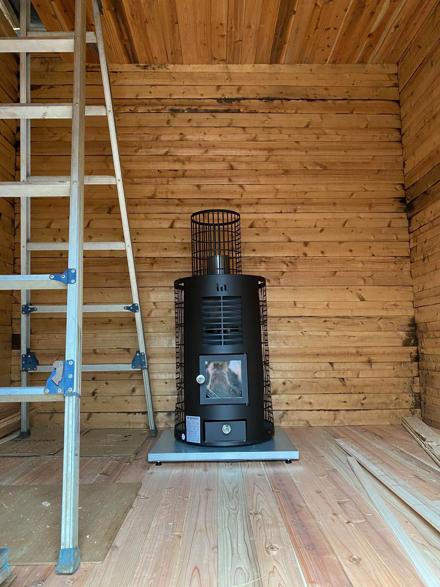 夏から始まったサウナ建設は、土台となる基礎工事から壁・屋根・床・天井の順に木材が組立てられ、いよいよサウナらしくなってまいりました。