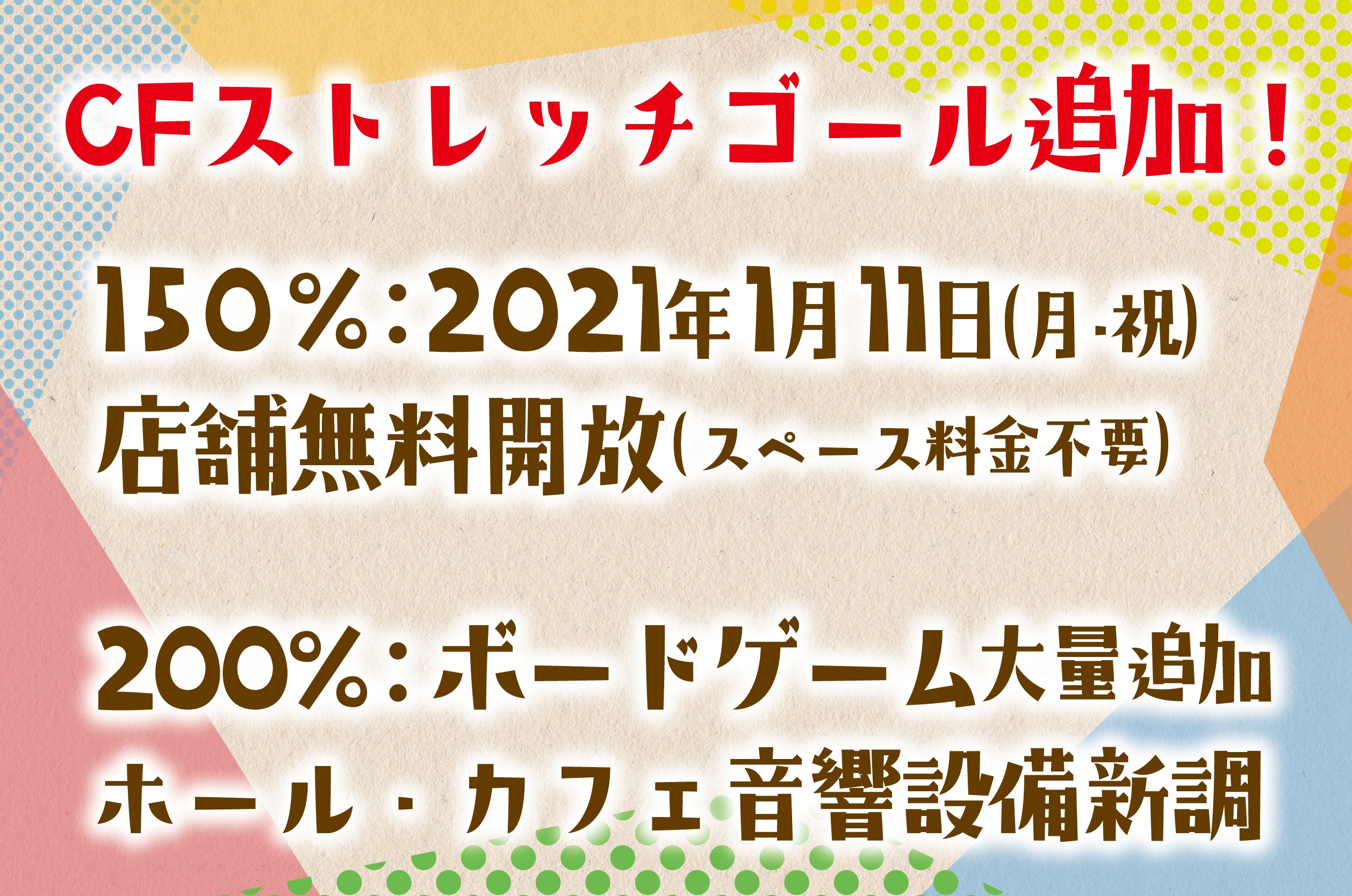 【200%達成で店内ボードゲーム大量追加&ホール・カフェ音響設備新調】