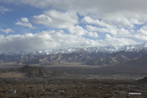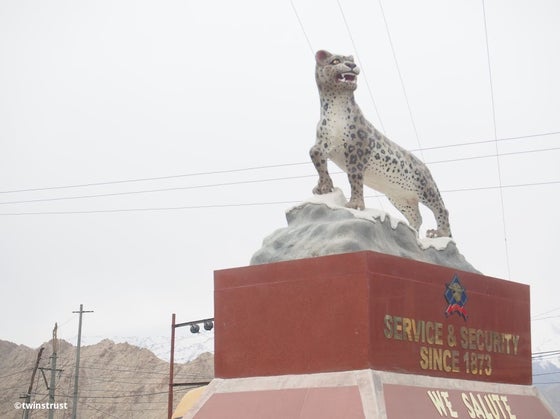 レーには、街を象徴するようにユキヒョウの像がありました。 「会えますように」と願いながら、ユキヒョウ像の横を車で通り、東へ走ること3時間。 番犬と家畜の牛がユキヒョウに襲われたという街に到着しました。 いざ、野生ユキヒョウのもとへ。 と、気持ちははやるのですが、なんと、10歩あるくだけでも一苦労、、、 標高4,000mを越えていることもあり、動悸息切れが激しく、一気に年老いた気分でした。 酸素って、とても大事なんですね^^; 亀のようなノロノロペースで坂を登り、犬と牛が襲われた家にたどり着くと、 そこからすぐそばの岩陰にユキヒョウがいました。 下の写真は、ユキヒョウに襲われた傷で死んだ家畜の牛。 ユキヒョウは、写真の赤丸(↓)のところに捕えた犬を持ち運び、ここに留まっていました。 ユキヒョウが出てくるのをじっと待つ私たち。 犬を持ち去ったまま、一向にその場から動かないので、 現地のスタッフが少し近づいてみると、驚いたユキヒョウは崖の上へ。 さすがユキヒョウ。 太く長い尻尾でバランスをとりながら、大きな脚で軽々と登っていきます。 堂々とした動きが野生そのもの。急な崖もなんのそのといった様子でした。 亀歩きだった私とは大違い、、、(汗) このまま逃げ去ったかと思いましたが、 捕らえた犬が惜しいのか、まだ家畜を襲いたいのか、この場を離れません。 崖の上から私たちの様子をずっと伺っていました。 つづく。