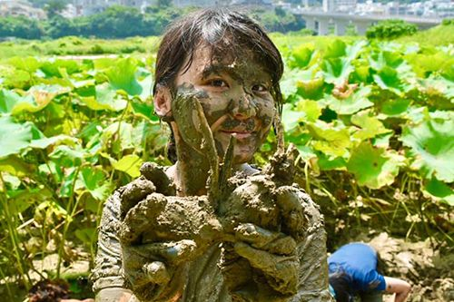僕もれんこん堀りを体験し、どろだらけになって最高に笑いました!