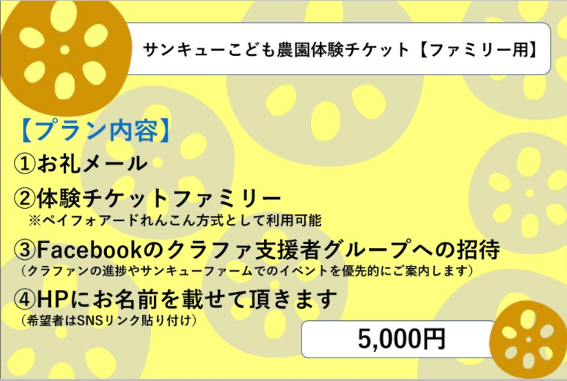 リターンC:サンキューこども農園体験チケット【ファミリー用】