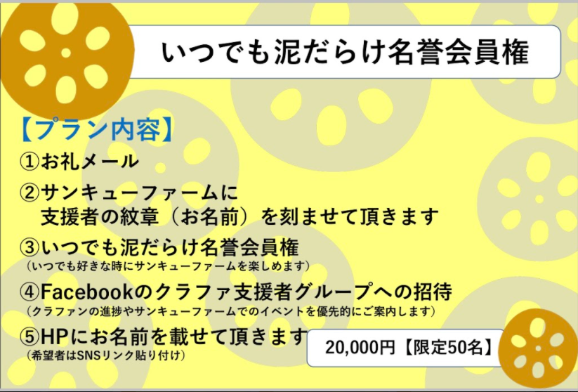 リターンD:いつでも泥だらけ名誉会員権【限定50名】20,000円