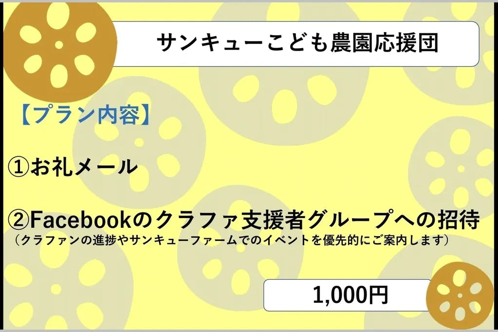 リターンA:サンキューこども農園応援団 1,000円
