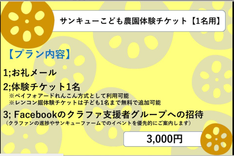 2.体験チケット1名(ご希望の方は※ペイフォアードれんこん方式として利用可能)