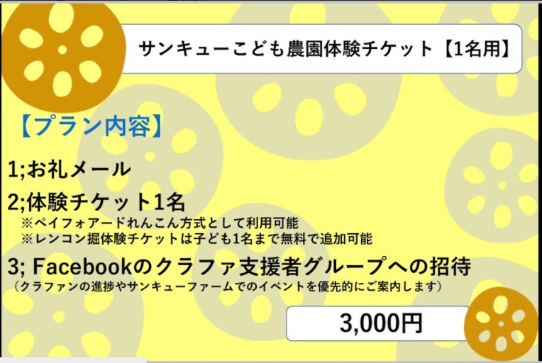 リターンB:サンキューこども農園体験チケット【1名用】