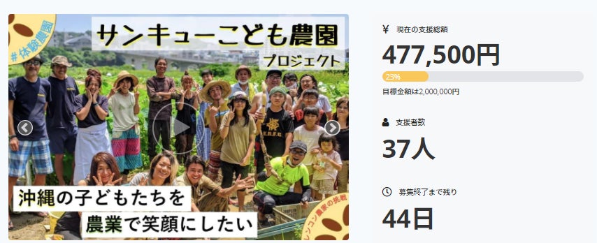 今日現在、37名トータル477,500円のご支援いただき、達成率23%です!!!