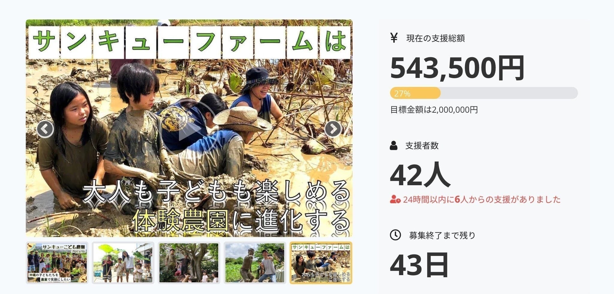 今日現在、42名様からトータル543,500円のご支援いただき、達成率27%です!!!