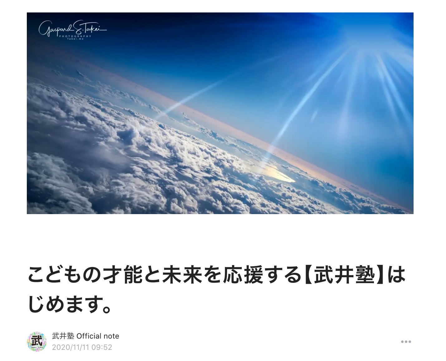 「武井塾はこんな塾になります」塾長の武井信也氏が寄稿したnoteを更新しました!