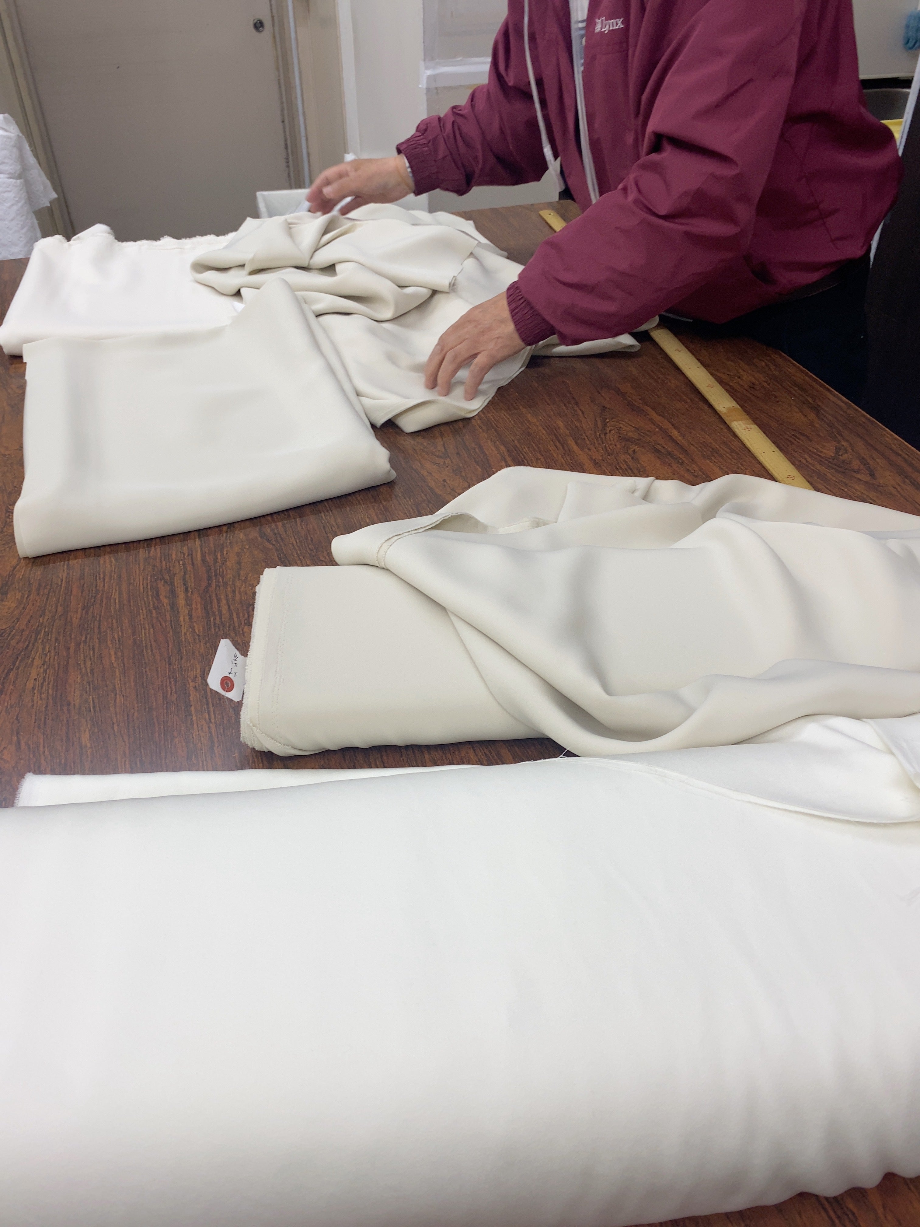 これまでと同様の型でも、異なる素材で創ることで雰囲気ががらっと変わるので、お客様がご注文いただく際にいくつかの生地から選べるようにご提案できればと思い、素敵な生地を見つけてはサンプルとしてストックしており、最近は白生地屋さんを開けそうな量になってきました(笑)