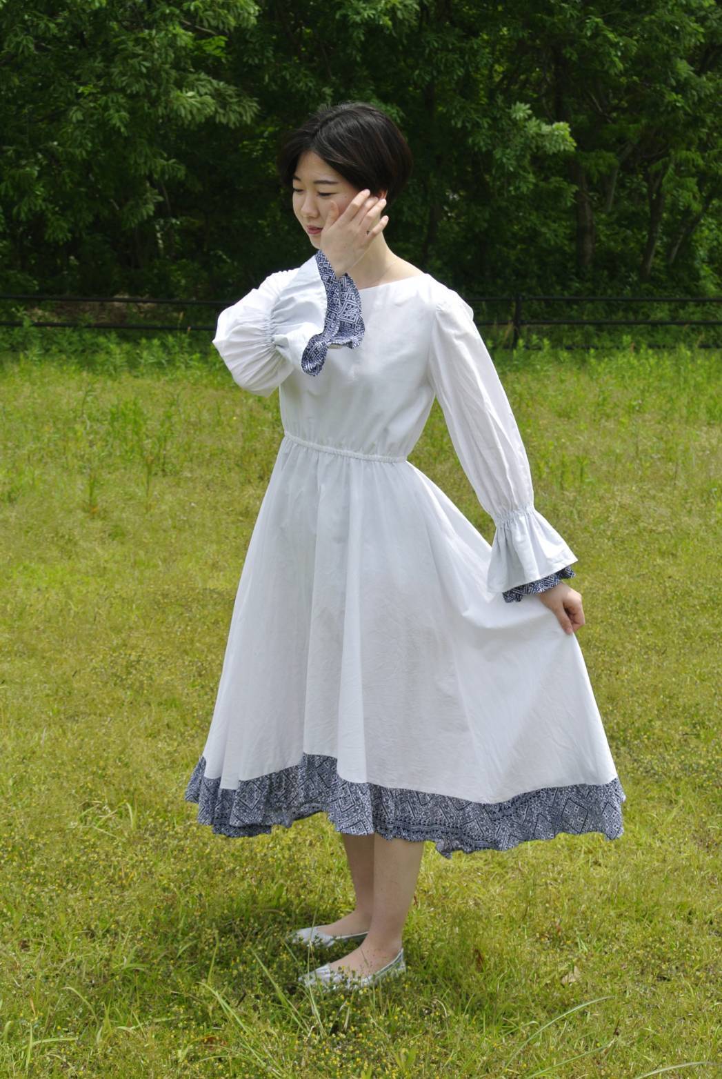 世界素材によって白の生地も変えているので、オーダーメイドらしい世界に一つだけのお洋服をお届けすることができて、この写真をいただいた時は心から嬉しかったです。