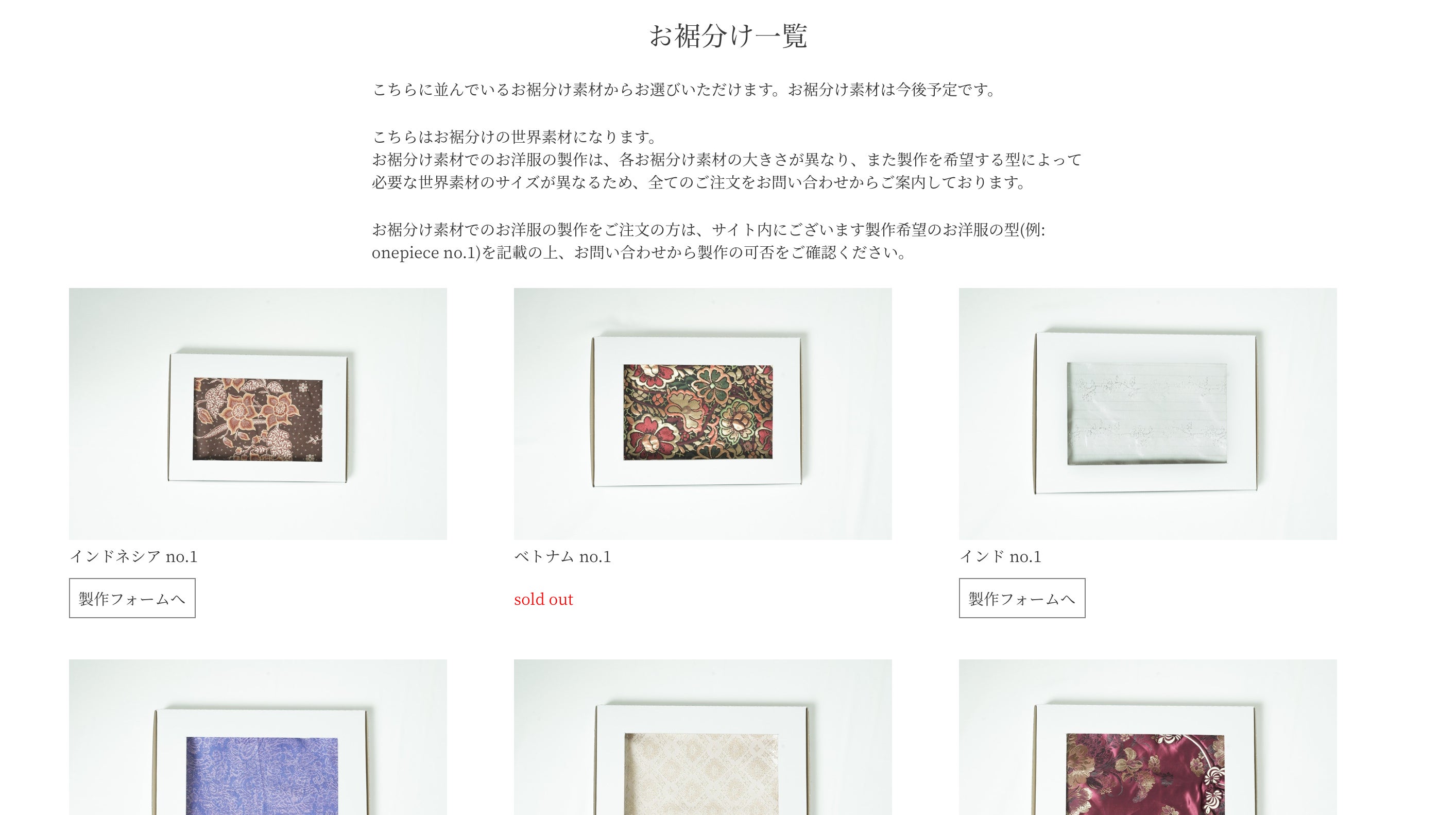 これからは、世界素材の想い出やお客様インタビューなども追加予定です。