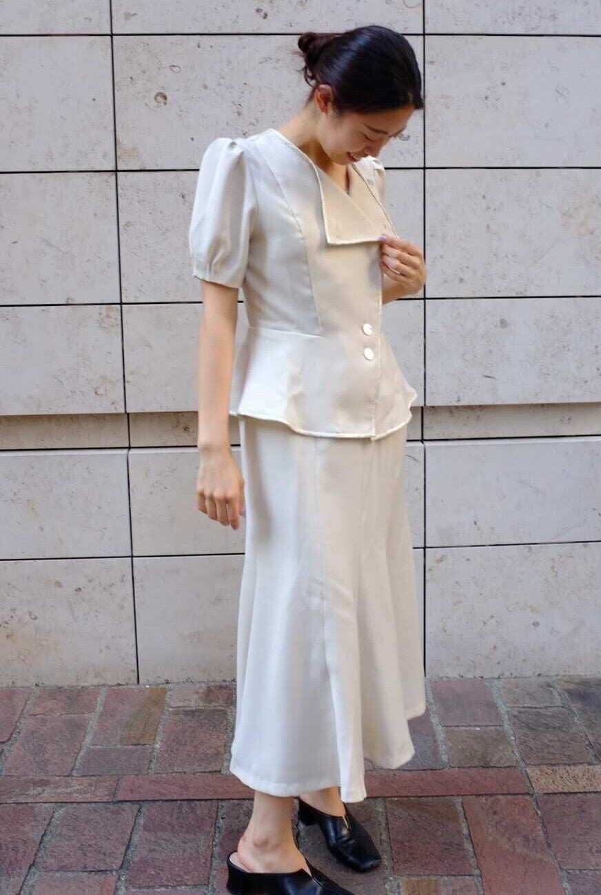 トップスの中にファスナーが付いており、1着のワンピースとして着ることができます。