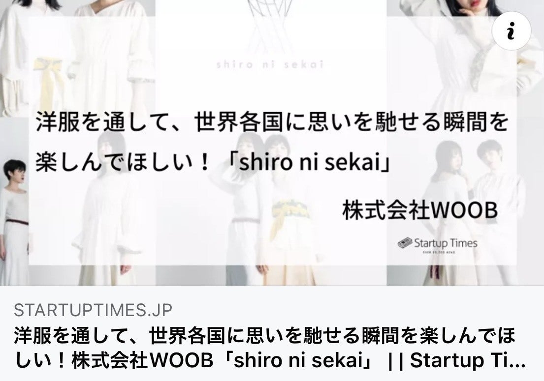 【初取材】STARTUPTIMESさんに取材をしてもらった記事が公開されました!shiro ni sekai立ち上げの経緯やお洋服の購入方法としてクラウドファンディングのリターンについてもお話をさせていただきました。記事はこちらhttps://startuptimes.jp/2020/12/15/213983/?fbclid=IwAR1mQElE6r9JCn7vjL19jwCErrXJqGBAfon4Ggm0XWLHtP_eB9QQnqzAATQぜひチェックしていただけると嬉しいです!
