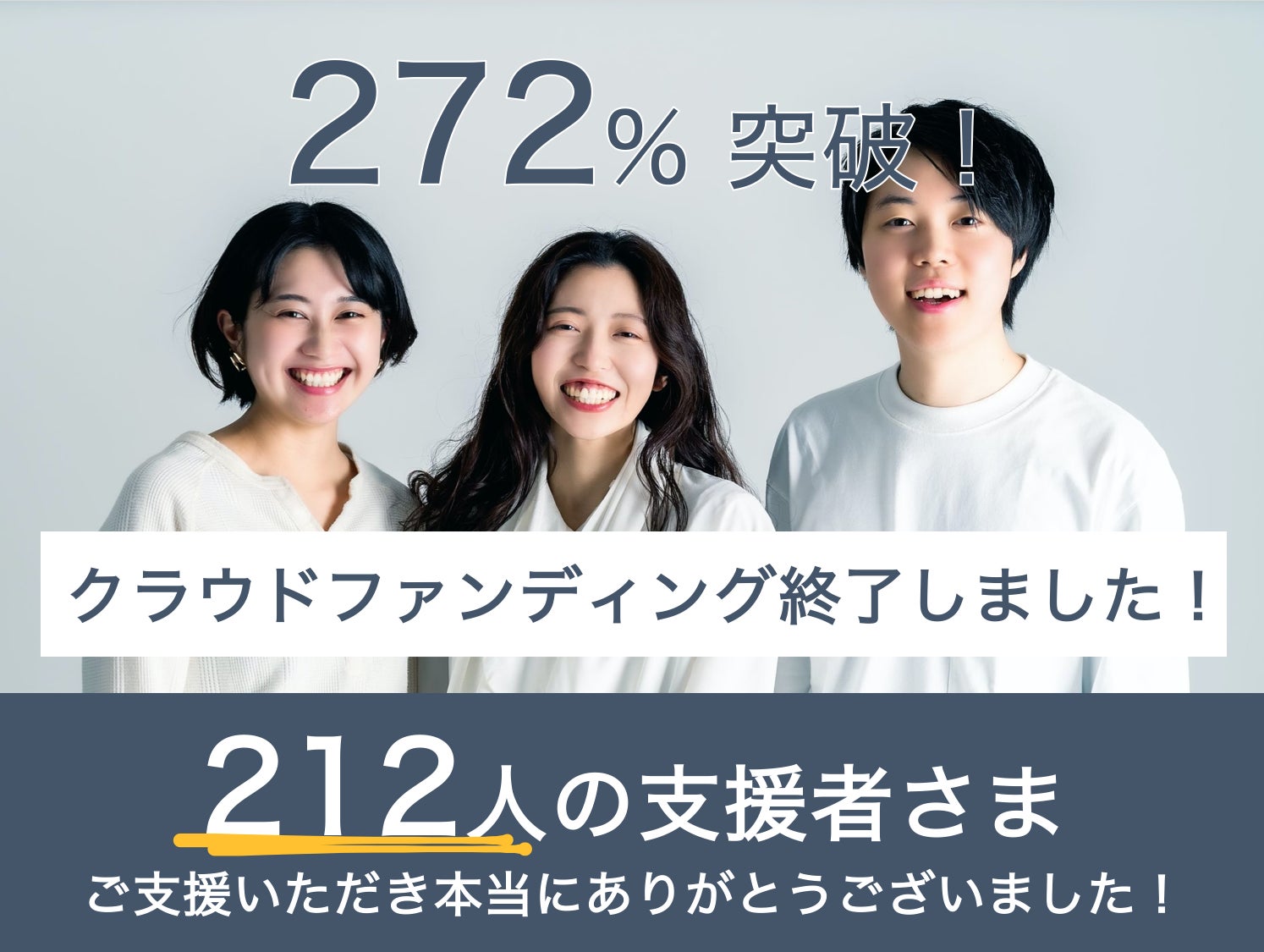 このプロジェクトは、2020/11/08に募集を開始し、 212人の支援により 1,364,500円の資金を集め、 2020/12/28に募集を終了しました