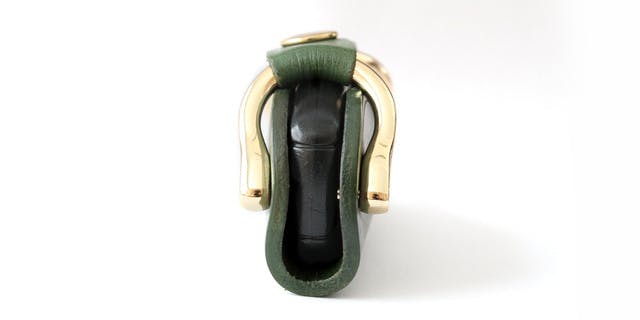 上部にあるベルトのホックを外せばすぐに鍵が取り出せます。